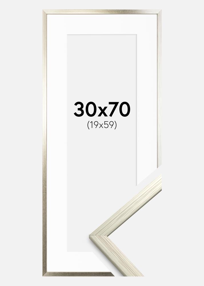 Rahmen Edsbyn Silber 30x70 cm - Passepartout Weiß 20x60 cm