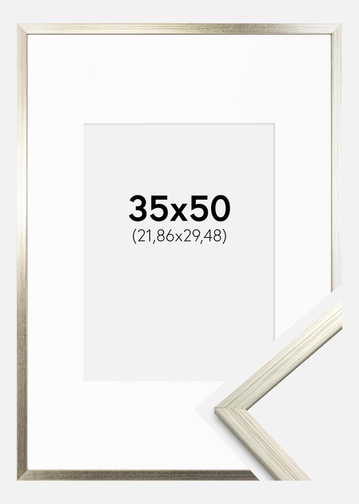 Rahmen Edsbyn Silber 35x50 cm - Passepartout Weiß 9x12 inches