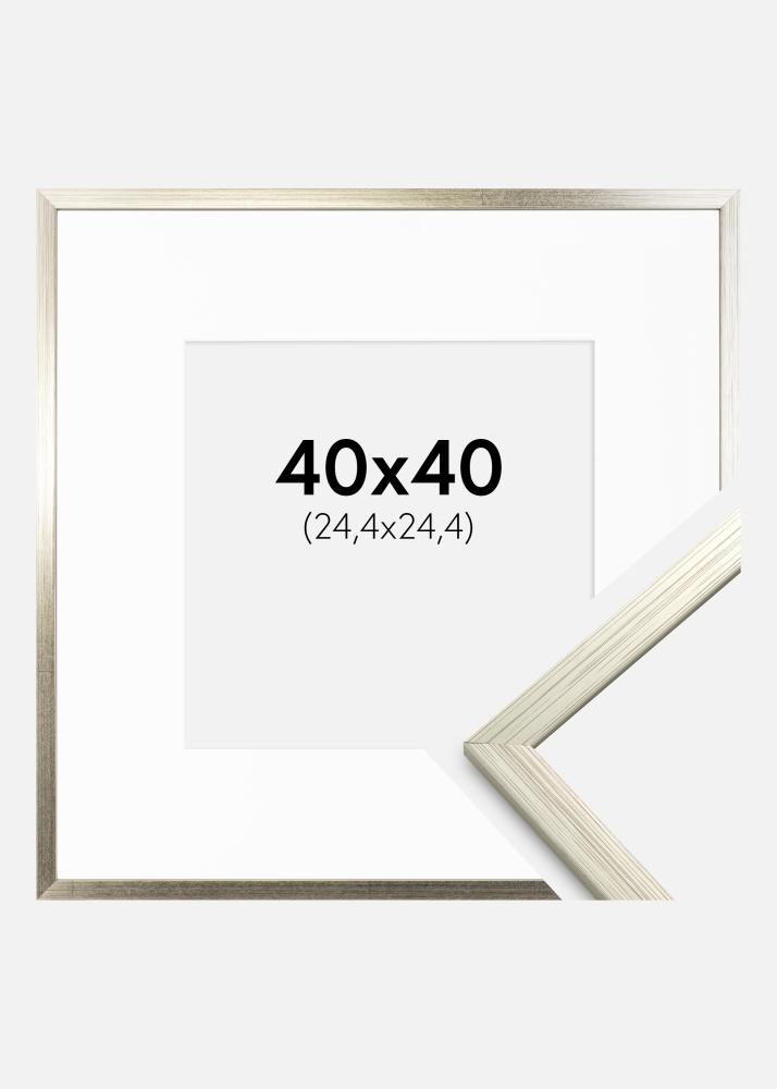 Rahmen Edsbyn Silber 40x40 cm - Passepartout Weiß 10x10 inches