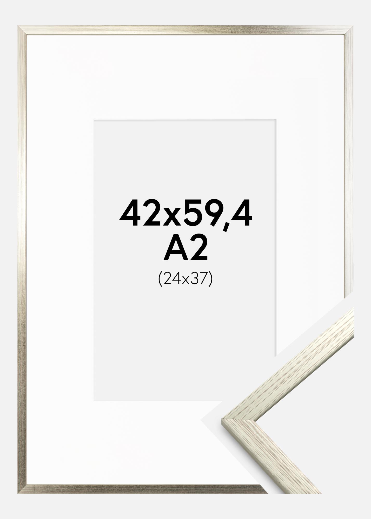 Rahmen Edsbyn Silber 42x59,4 cm (A2) - Passepartout Weiß 25x38 cm
