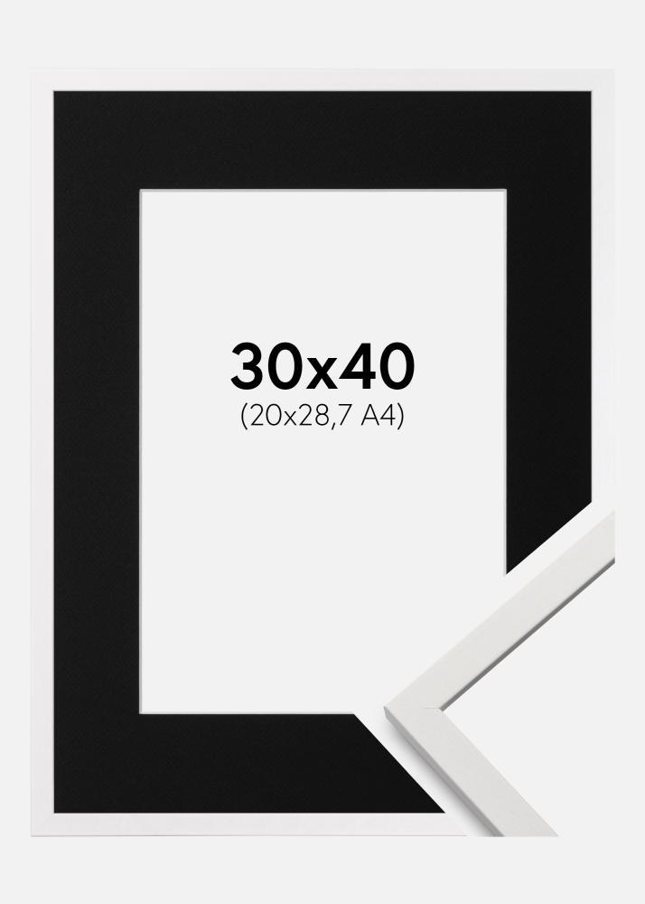 Rahmen Edsbyn Weiß 30x40 cm - Passepartout Schwarz 21x29,7 cm (A4)