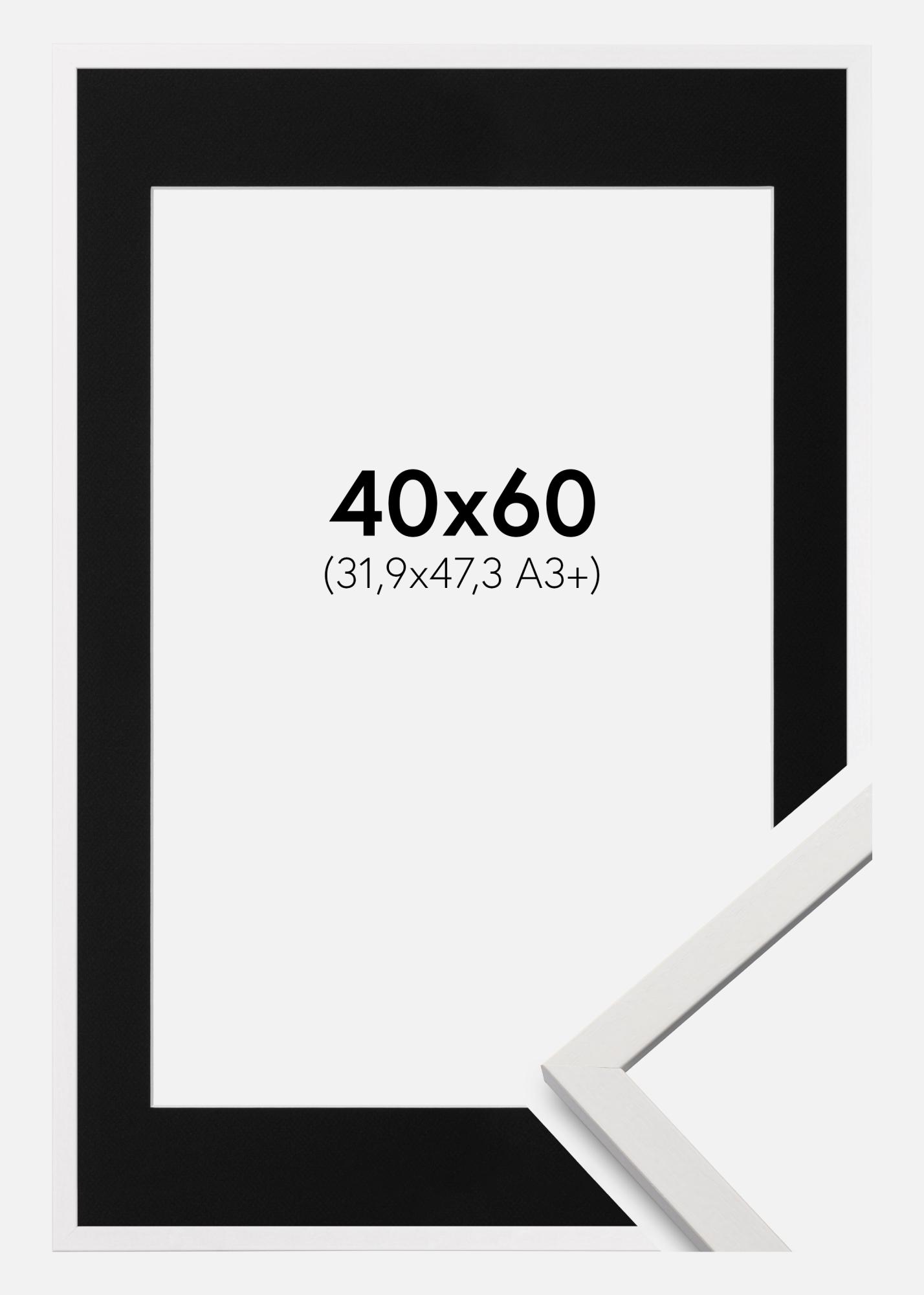 Rahmen Edsbyn Weiß 40x60 cm - Passepartout Schwarz 32,9x48,3 cm (A3+)