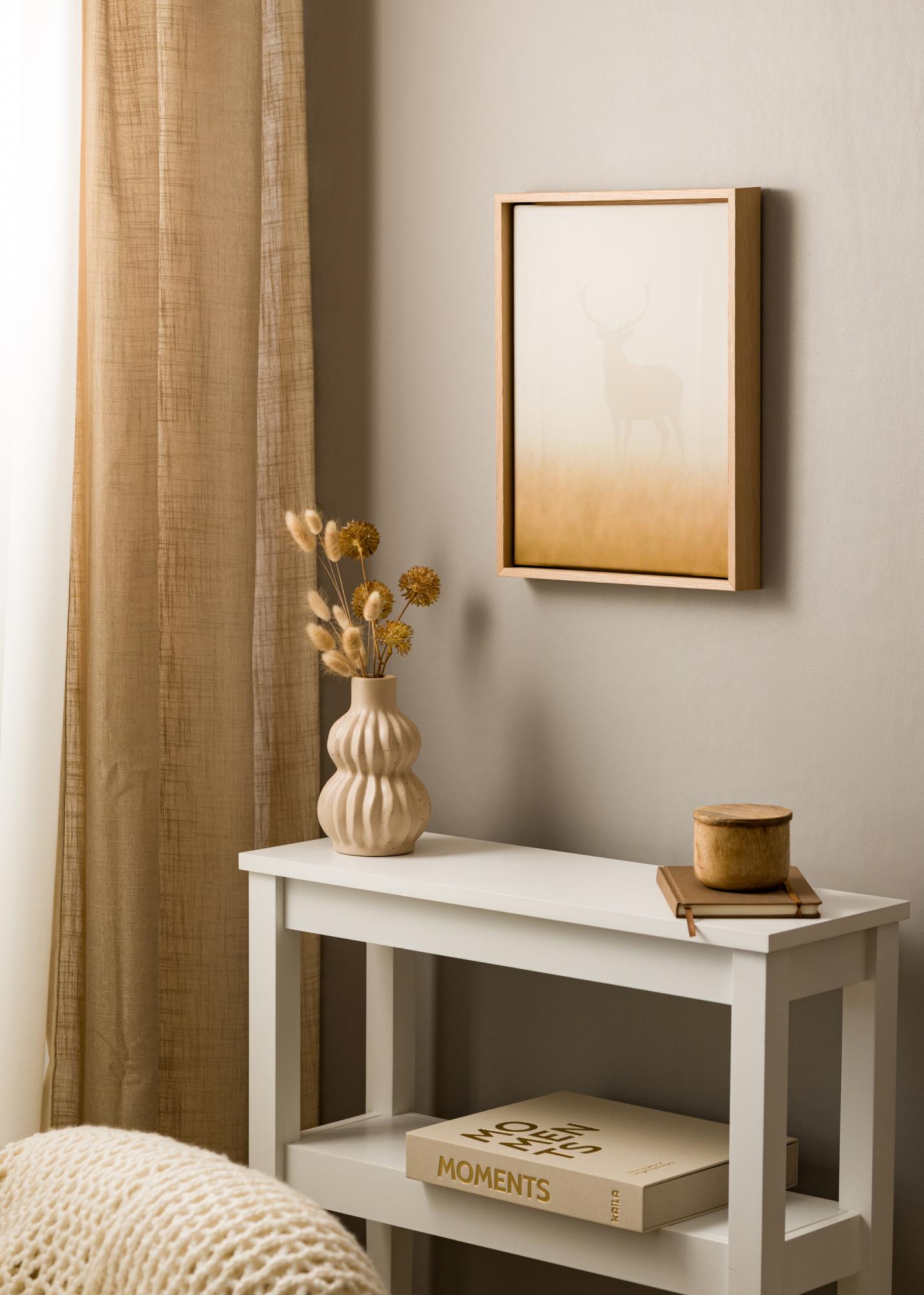 Rahmen Anubis Canvasrahmen Eiche ist ein maßgefertigter Canvasrahmen, der in unserer eigenen Rahmenwerkstatt hergestellt wird. Dieser Fotorahmen ist so konzipiert, dass er für Leinwandbilder mit einer Tiefe von 28–38 mm geeignet ist, was einen eleganten schwebenden Effekt um Ihr Motiv herum erzeugt. Mit einer eichefarbenen Oberfläche wird die natürliche Maserung des Holzes betont, was ein warmes und zeitloses Gefühl vermittelt.