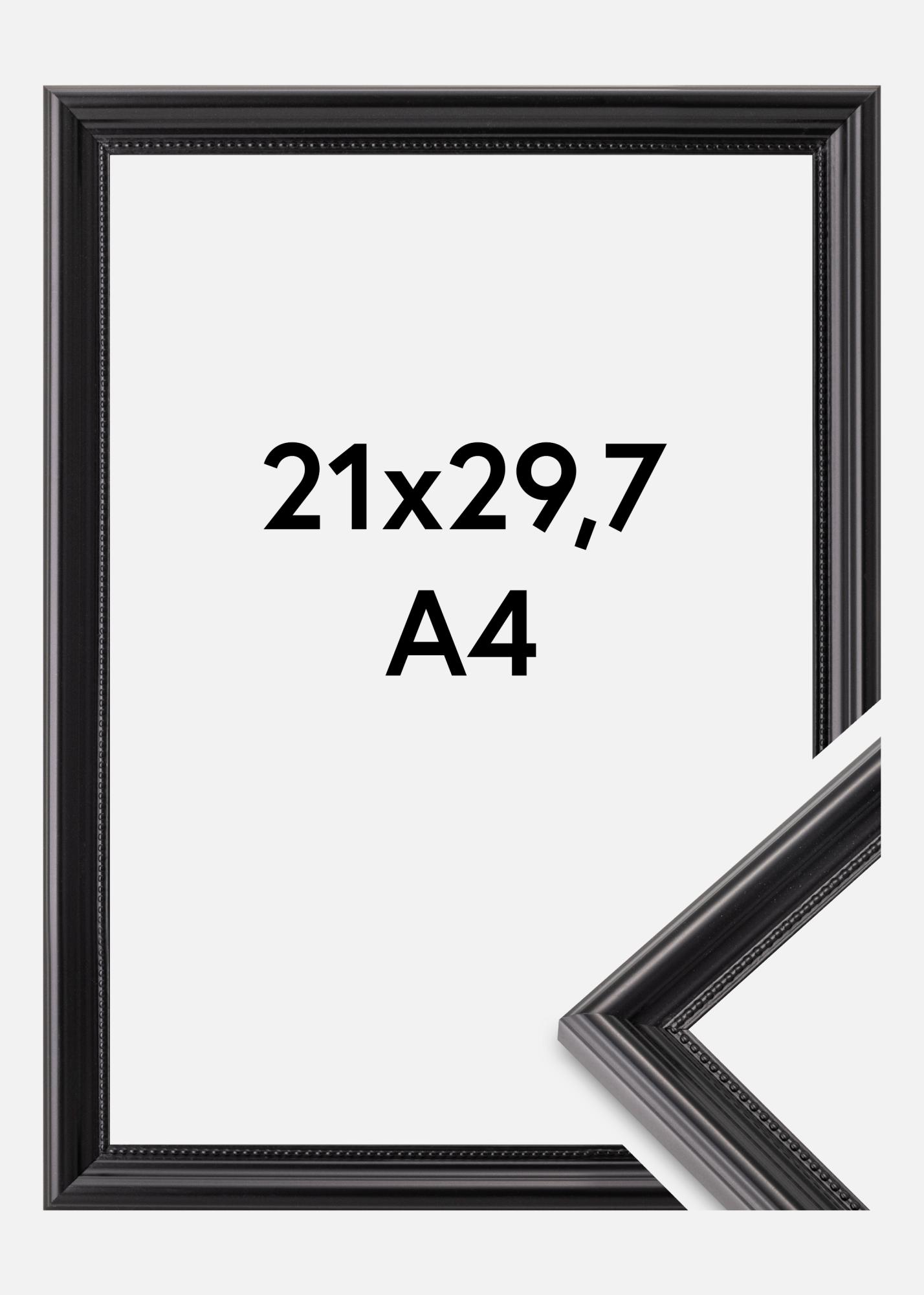 Entdecken Sie die Eleganz und das zeitlose Design unserer schwarzen Bilderrahmen in der Größe 21x29,7 cm (A4). Dieser Rahmen ist perfekt, um Ihre Lieblingsbilder oder Kunstarbeiten mit seinem profilierten Rahmen in retro-stilvoller Optik hervorzuheben. Die 20 mm breite Rahmenleiste wird von einer Tiefe von 17 mm ergänzt, was Ihrem eingerahmten Bild eine markante und attraktive Kante verleiht.