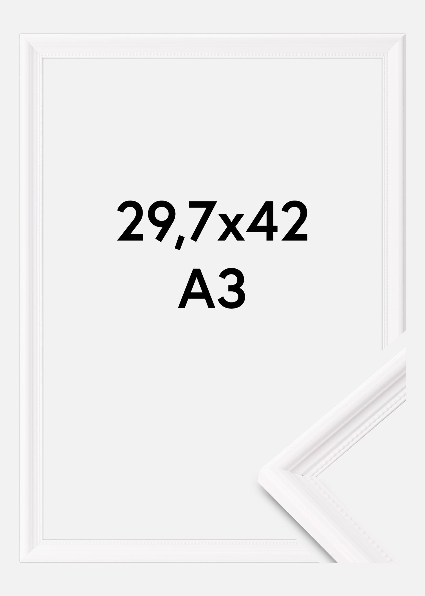 Gib deinen Bildern die Aufmerksamkeit, die sie verdienen, mit diesem eleganten 29,7x42 cm (A3) Bilderrahmen. Mit seiner weißen Farbe und matten Oberfläche ergänzt dieser Bilderrahmen alle Arten von Kunstwerken oder Fotos. Der profilierte Retro-Rahmen verleiht deiner Einrichtung einen zeitlosen Charme.