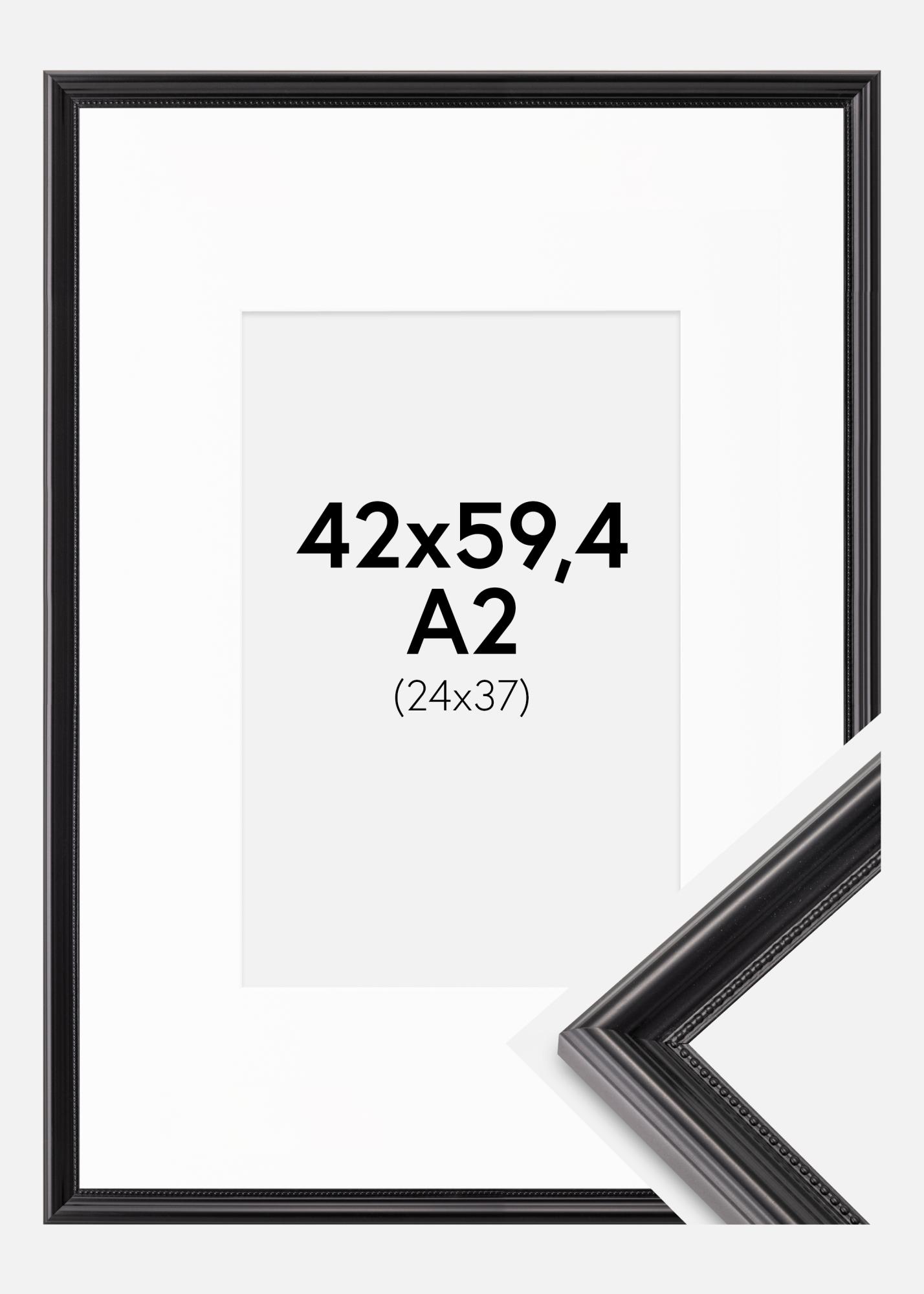 Rahmen Gala Schwarz 42x59,4 cm (A2) - Passepartout Weiß 25x38 cm