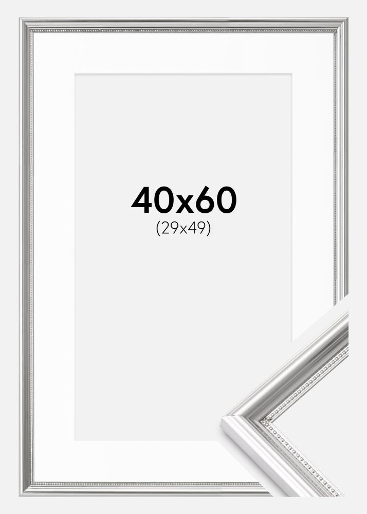 Rahmen Gala Silber 40x60 cm - Passepartout Weiß 30x50 cm