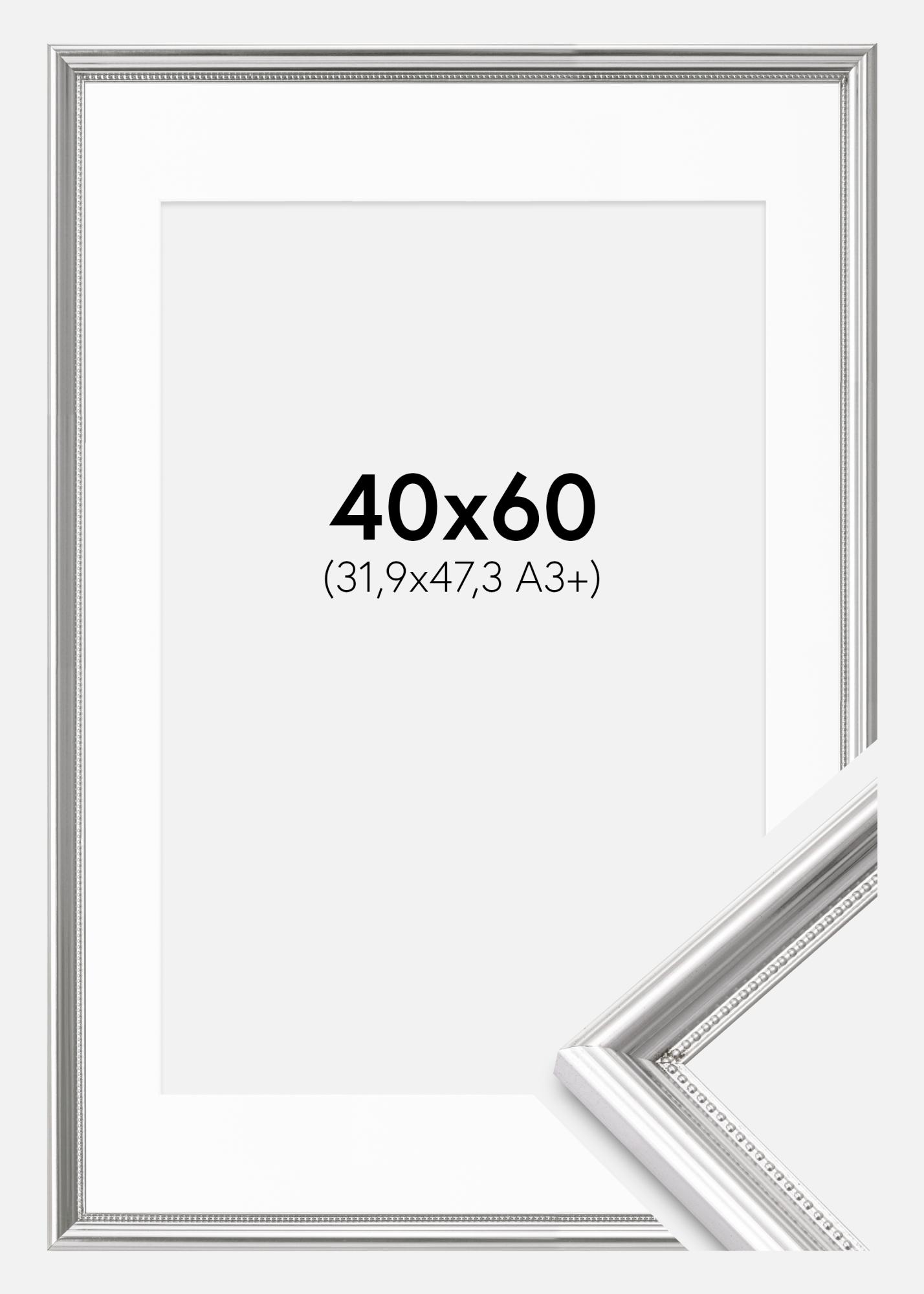 Rahmen Gala Silber 40x60 cm - Passepartout Weiß 32,9x48,3 cm (A3+)