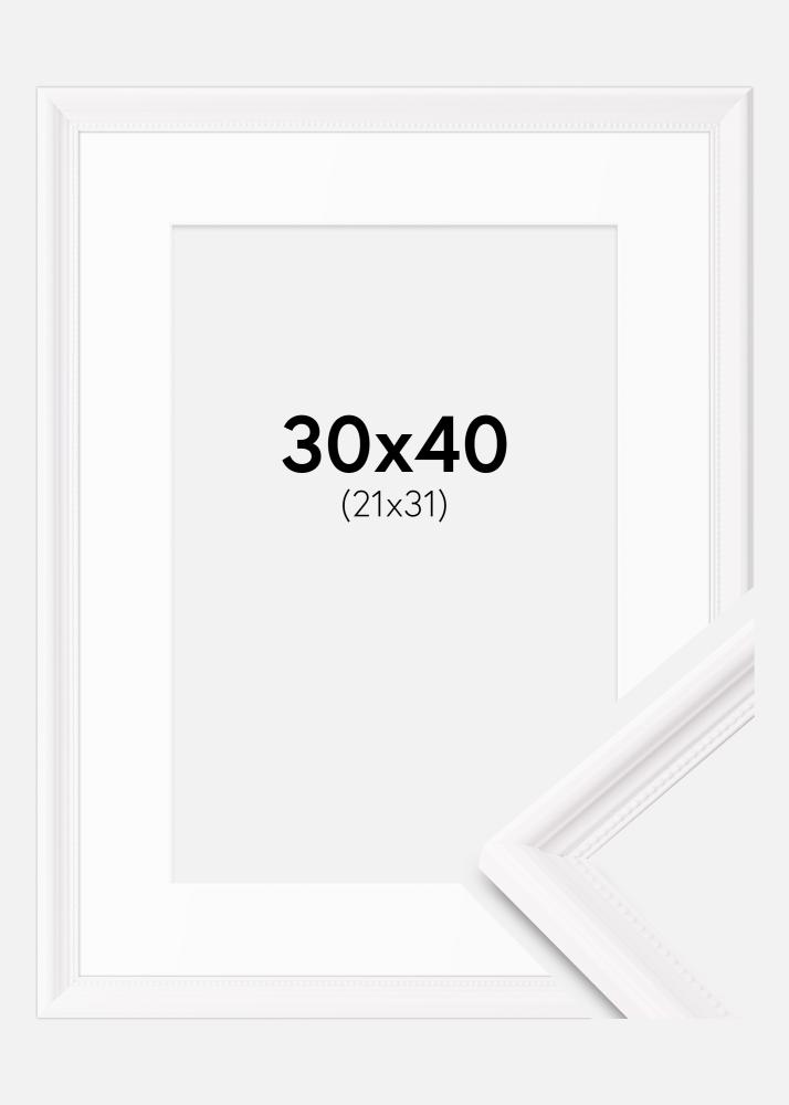 Verwandeln Sie Ihre Bilder in Kunstwerke mit unserem eleganten Rahmen in Weiß, komplett mit einem stilvollen Passepartout. Dieser Rahmen ist so gestaltet, dass er Bilder in der Größe 22x32 cm fasst und hat eine Gesamtaußenmaß von 32,9x42,9 cm. Mit einer Breite von 20 mm und einer Tiefe von 17 mm bietet er eine robuste und anspruchsvolle Einrahmung, die Ihre Lieblingsbilder hervorhebt.