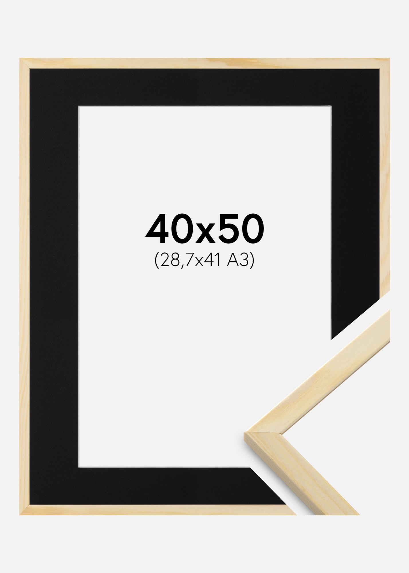 Rahmen Galant Kiefer 40x50 cm - Passepartout Schwarz 29,7x42 cm (A3)