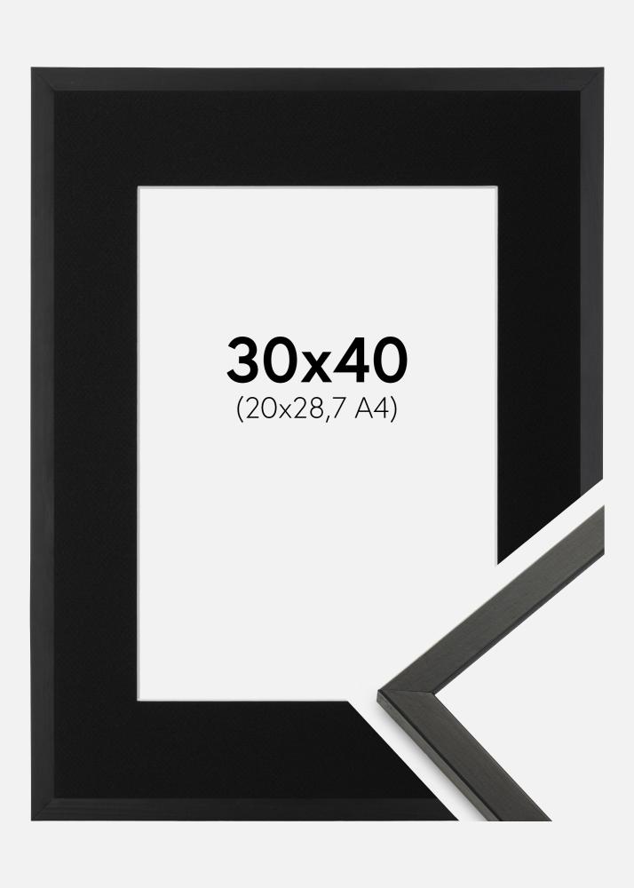Rahmen Galant Schwarz 30x40 cm - Passepartout Schwarz 21x29,7 cm