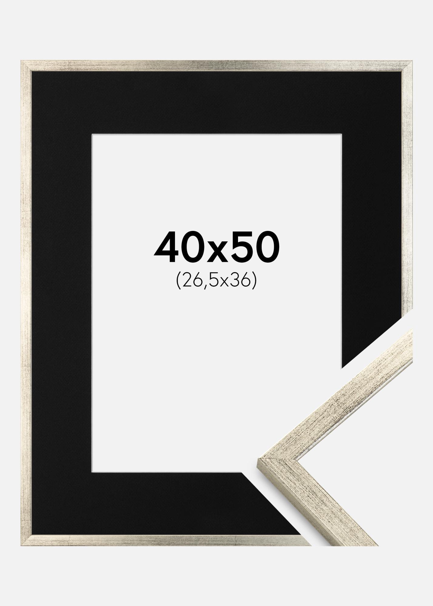 Rahmen Galant Silber 40x50 cm - Passepartout Schwarz 27,5x37 cm