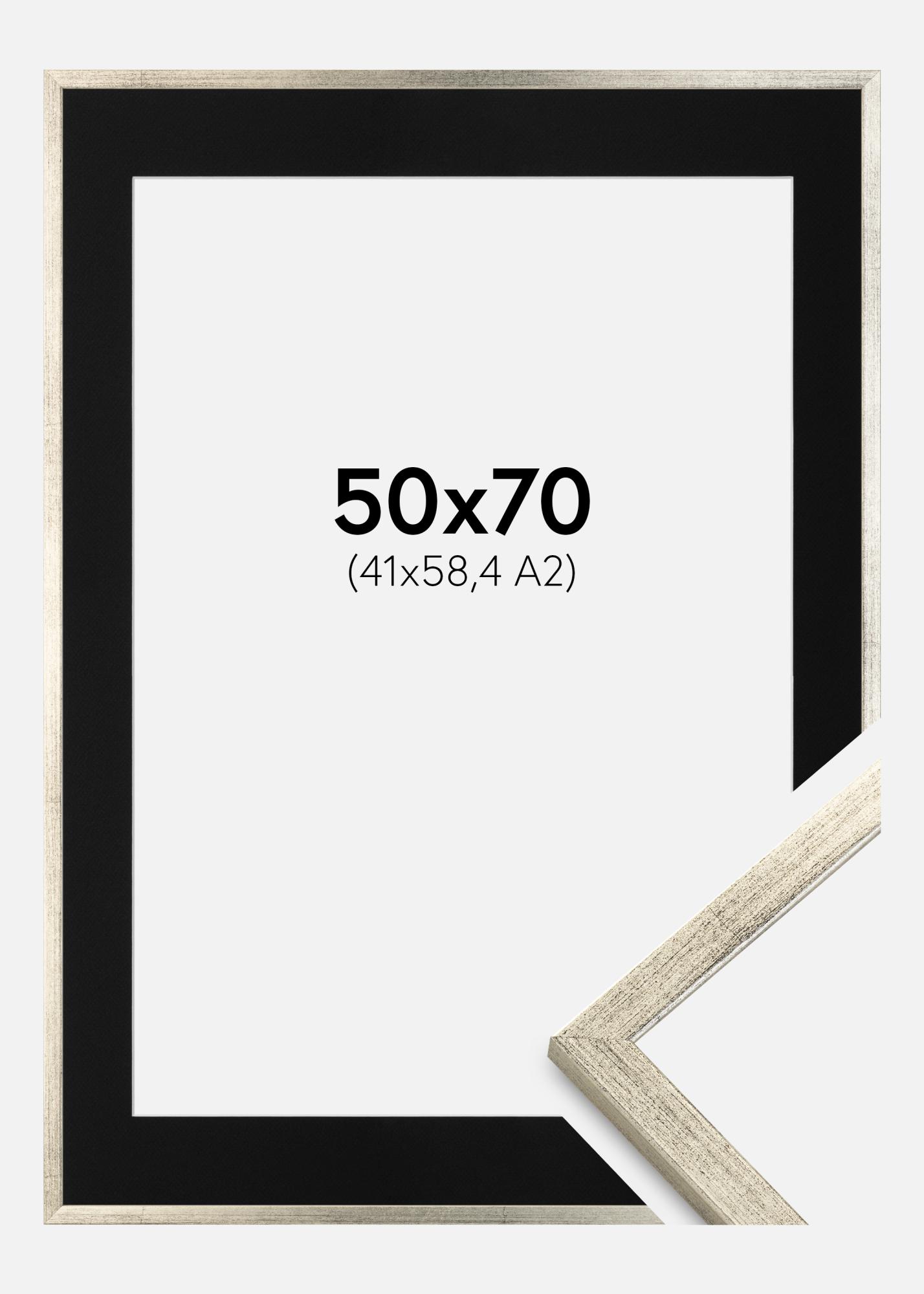 Rahmen Galant Silber 50x70 cm - Passepartout Schwarz 42x59,4 cm