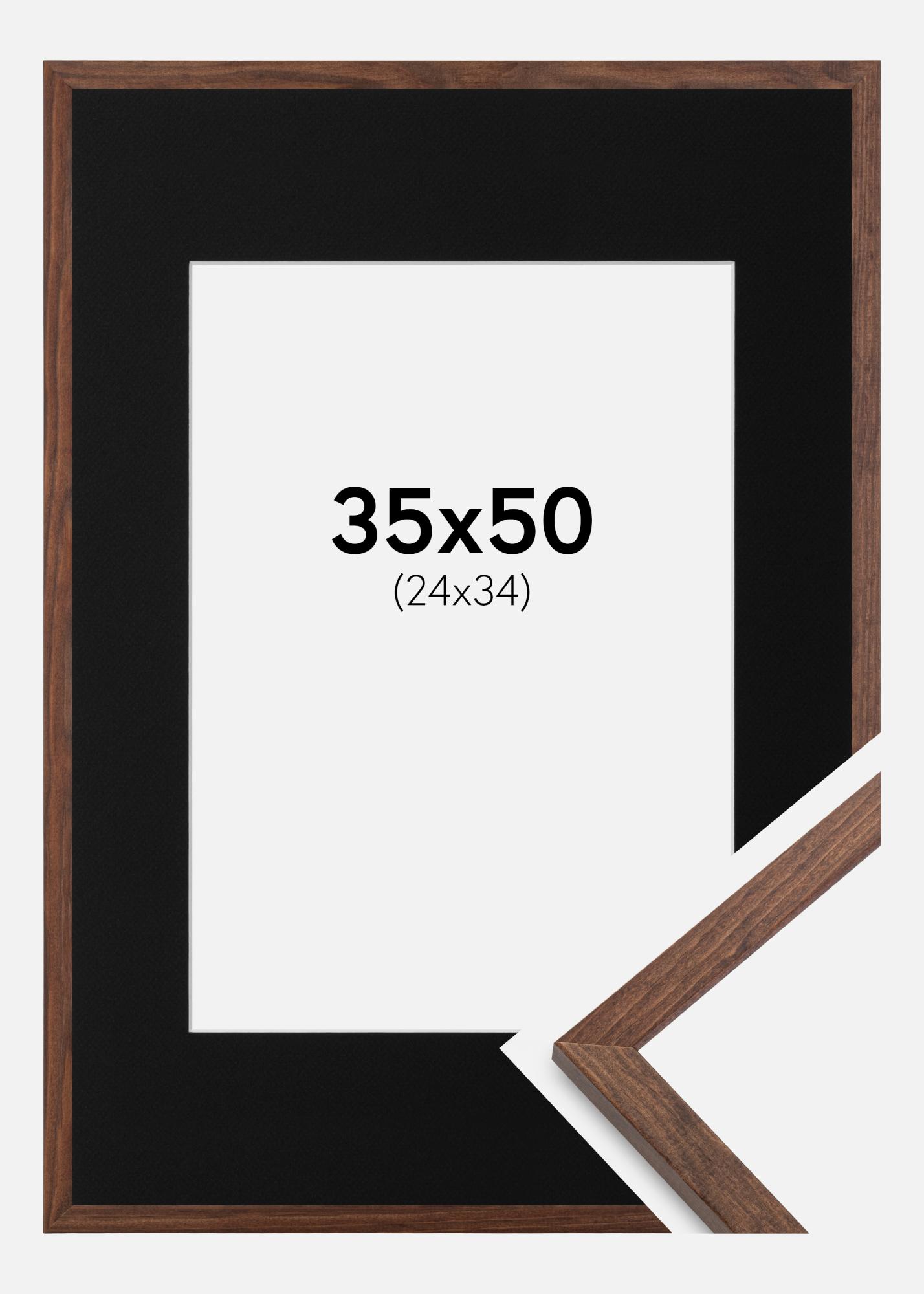 Rahmen Galant Walnuss 35x50 cm - Passepartout Schwarz 25x35 cm