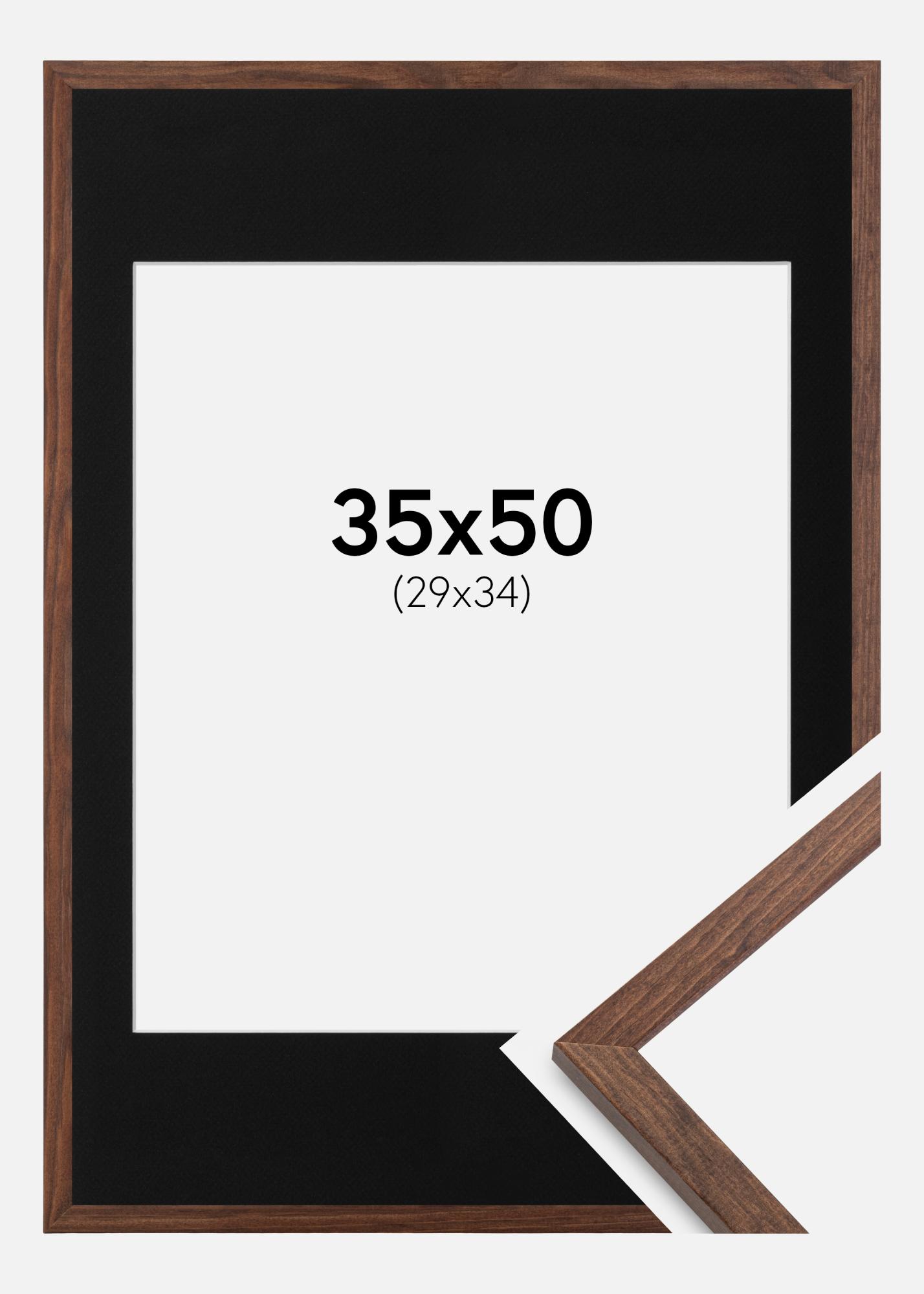 Rahmen Galant Walnuss 35x50 cm - Passepartout Schwarz 30x35 cm