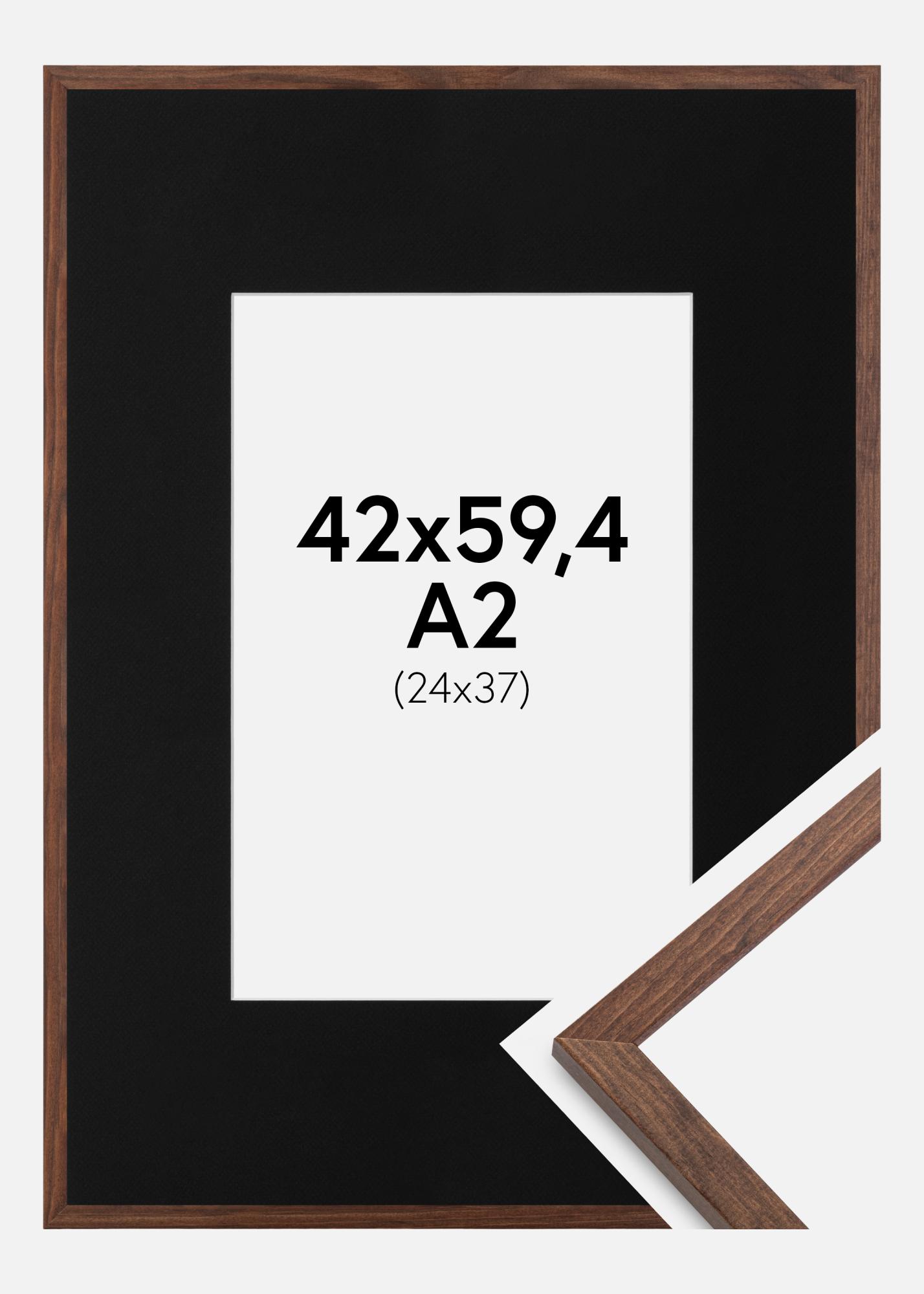 Rahmen Galant Walnuss 42x59,4 cm (A2) - Passepartout Schwarz 25x38 cm