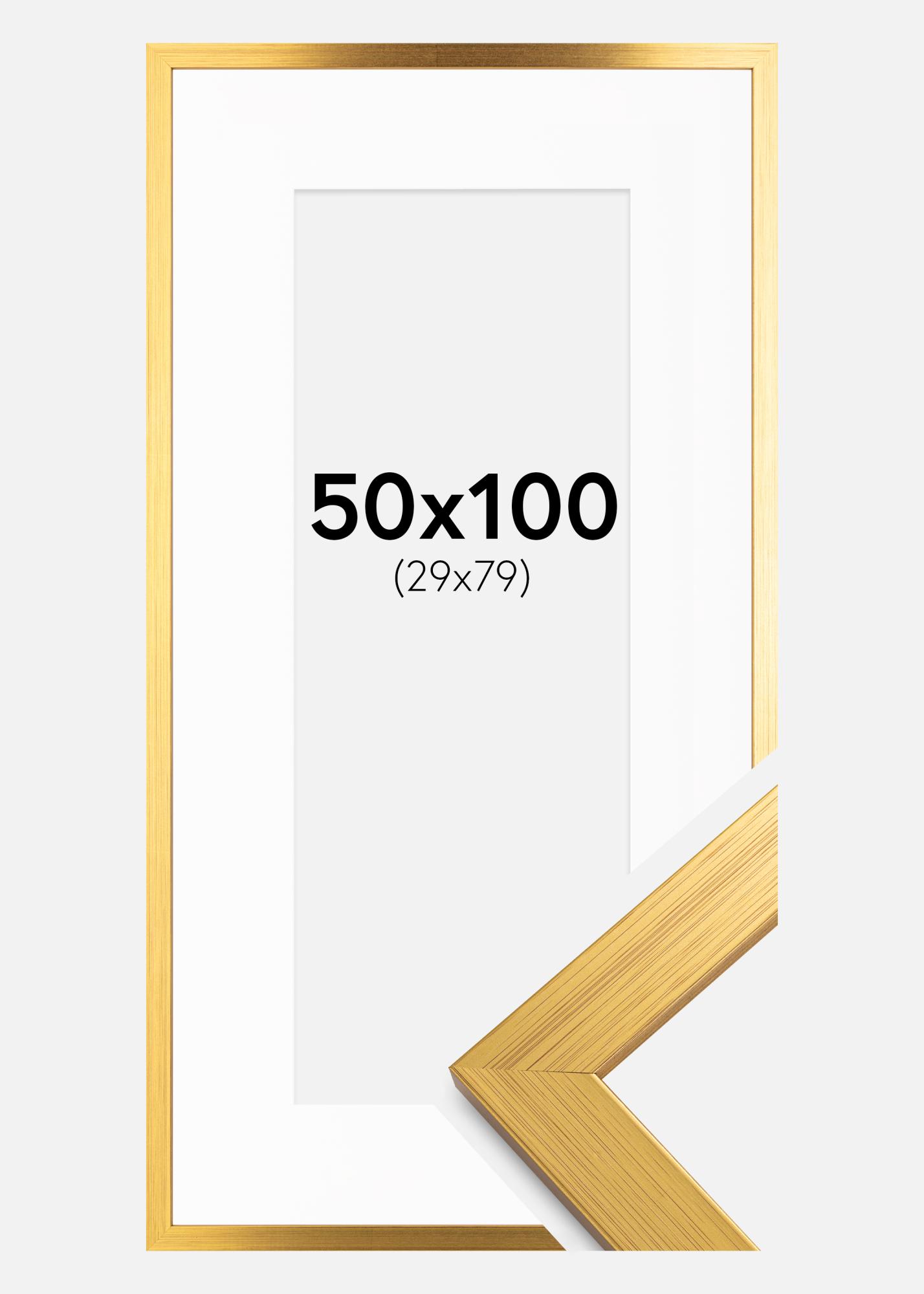 Rahmen Gold Wood 50x100 cm - Passepartout Weiß 30x80 cm