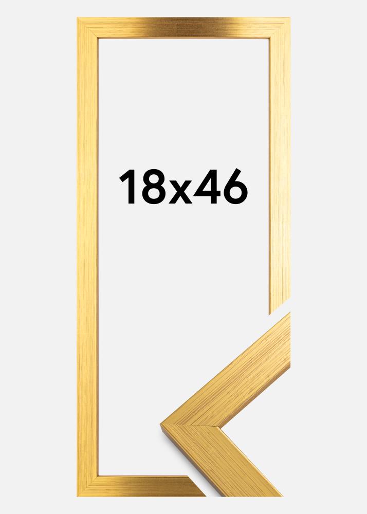 Erzeugen Sie ein luxuriöses Gefühl in Ihrem Zuhause mit diesem eleganten 18x46 cm goldenen Bilderrahmen. Das geschmackvolle Design mit einer 22 mm breiten Rahmenleiste ergänzt Ihre Lieblingsbilder oder Kunstwerke und gibt ihnen die Aufmerksamkeit, die sie verdienen. Dieser Bilderrahmen ist nicht nur ein stilvolles Wohnaccessoire, sondern auch praktisch dank der mitgelieferten Metallhaken auf der Rückseite, die eine einfache Aufhängung sowohl im Quer- als auch im Hochformat ermöglichen.