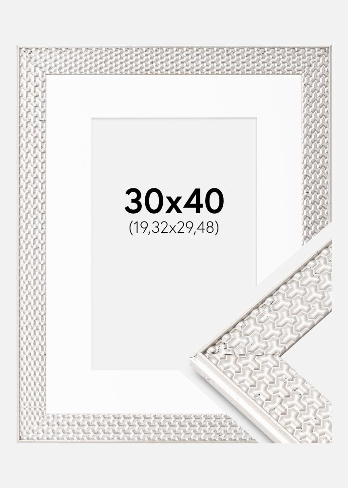 Rahmen Grace Silber 30x40 cm - Passepartout Weiß 8x12 inches