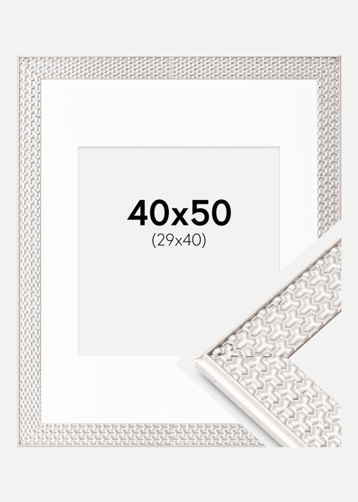 Rahmen Grace Silber 40x50 cm - Passepartout Weiß 30x41 cm