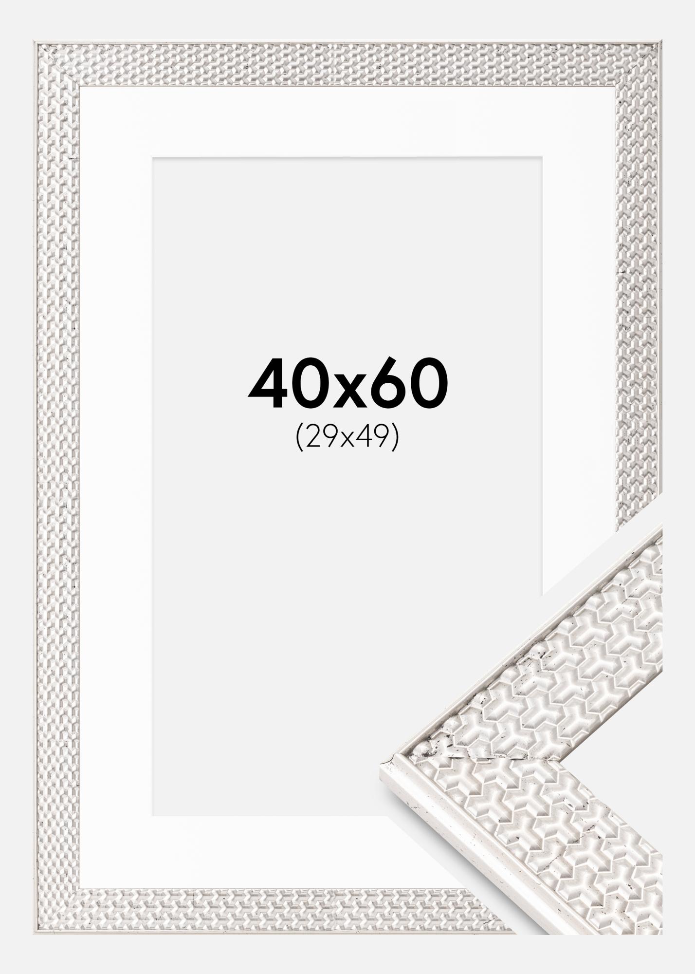Rahmen Grace Silber 40x60 cm - Passepartout Weiß 30x50 cm