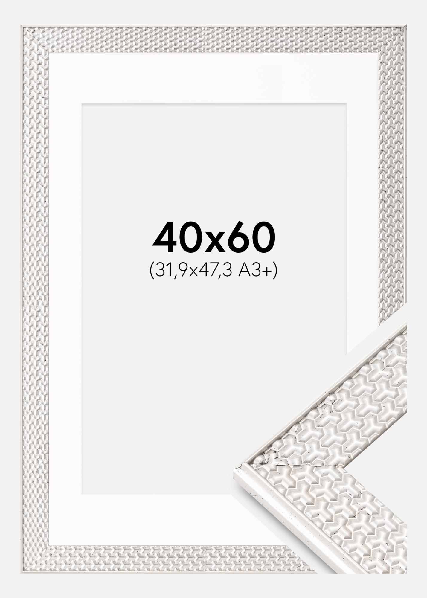 Rahmen Grace Silber 40x60 cm - Passepartout Weiß 32,9x48,3 cm (A3+)