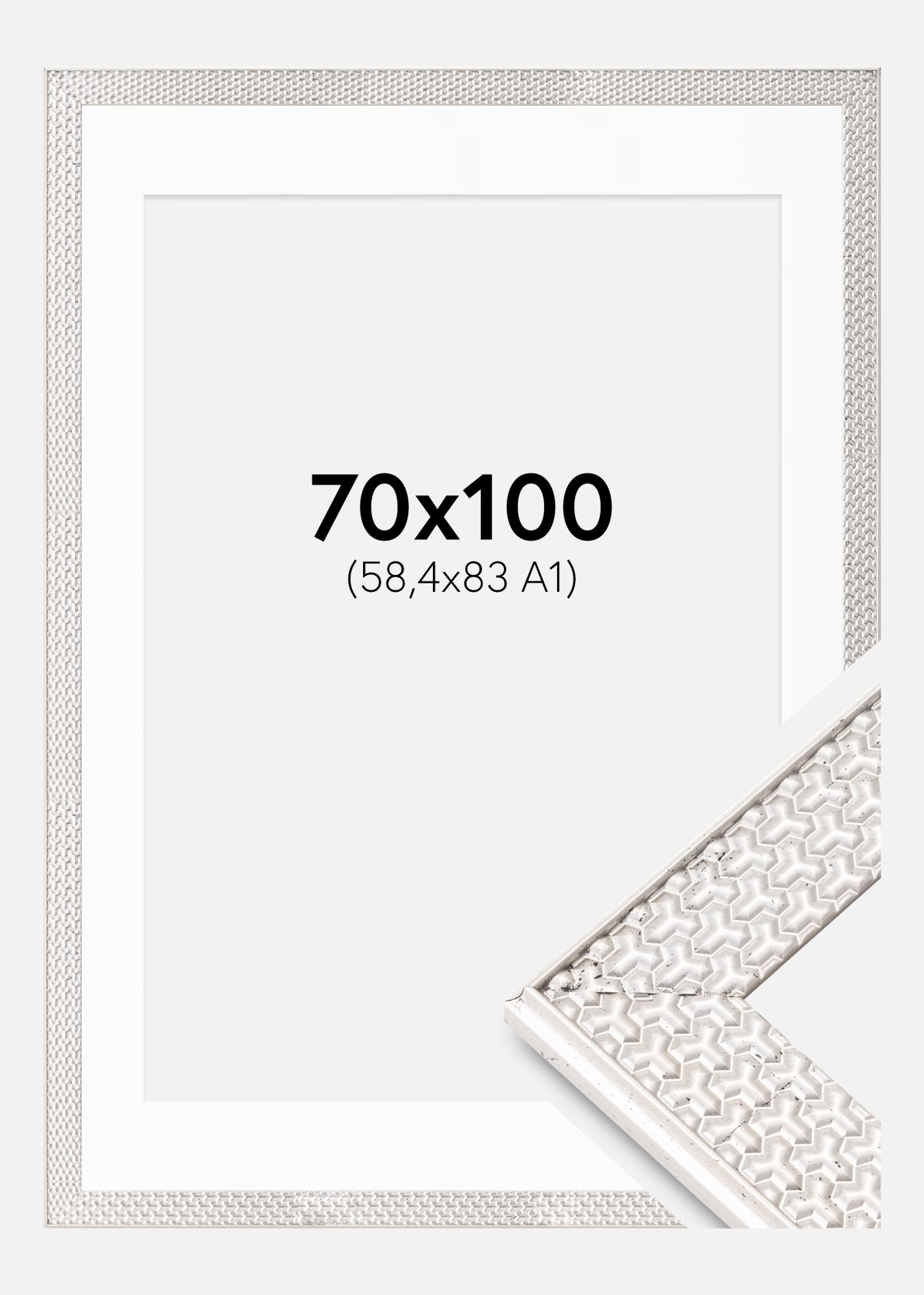 Rahmen Grace Silber 70x100 cm - Passepartout Weiß 59,4x84 cm (A1)