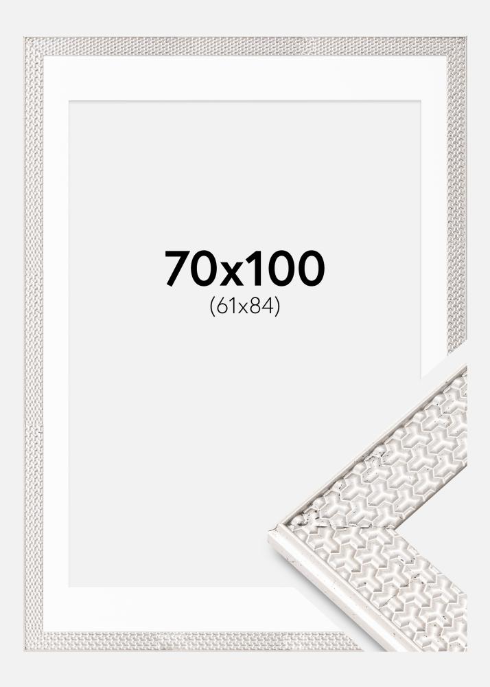 Rahmen Grace Silber 70x100 cm - Passepartout Weiß 62x85 cm