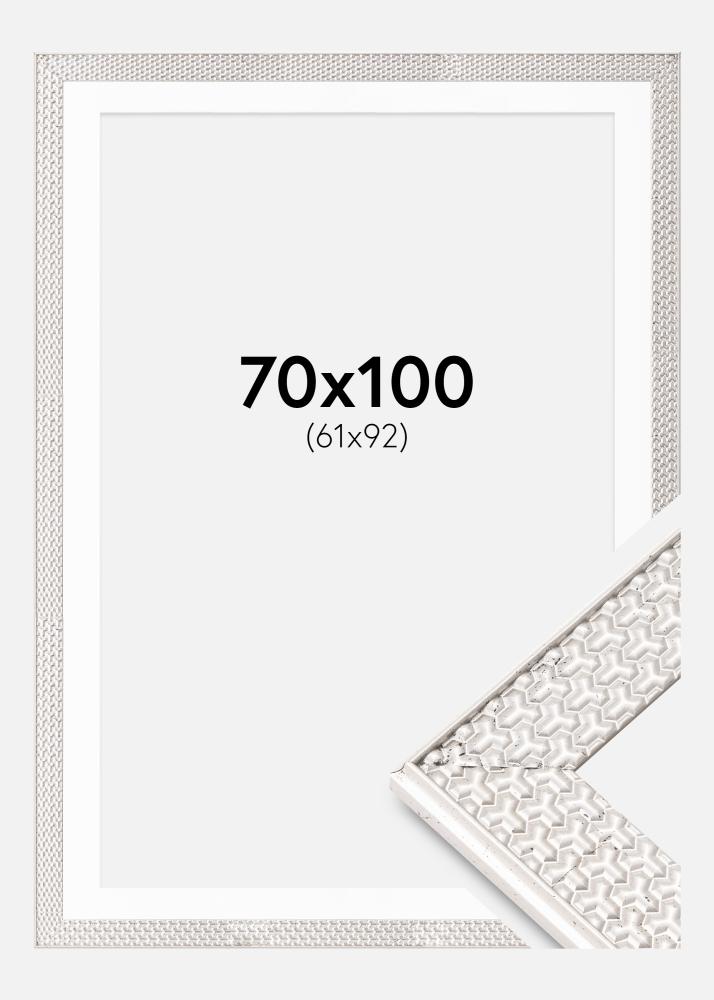 Rahmen Grace Silber 70x100 cm - Passepartout Weiß 62x93 cm
