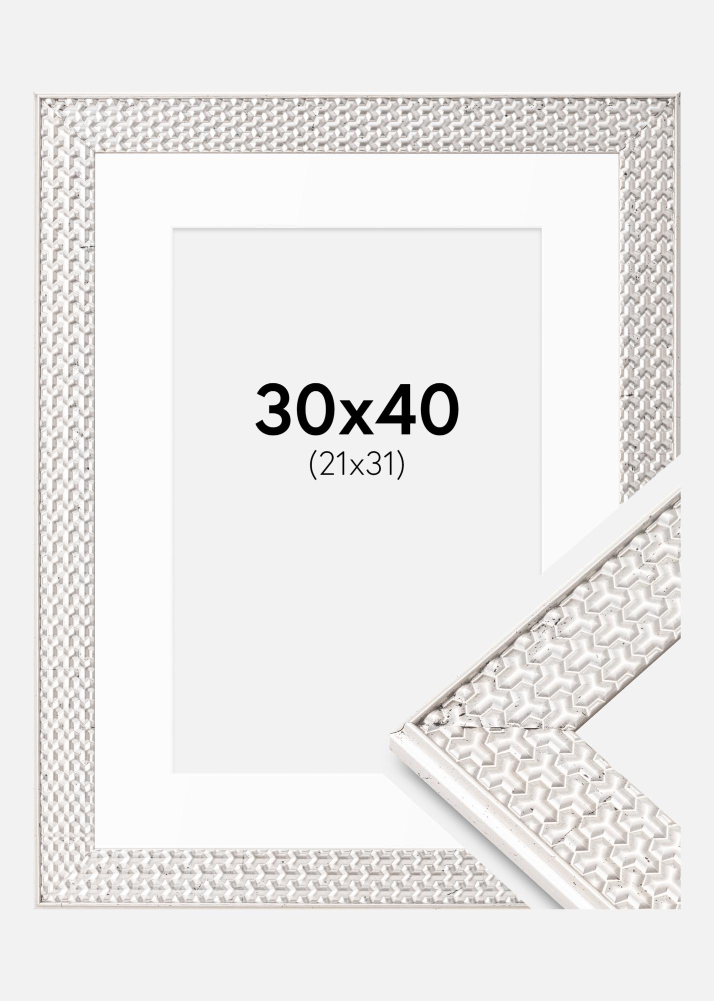 Rahmen Grace Silber 30x40 cm - Passepartout Weiß 22x32 cm