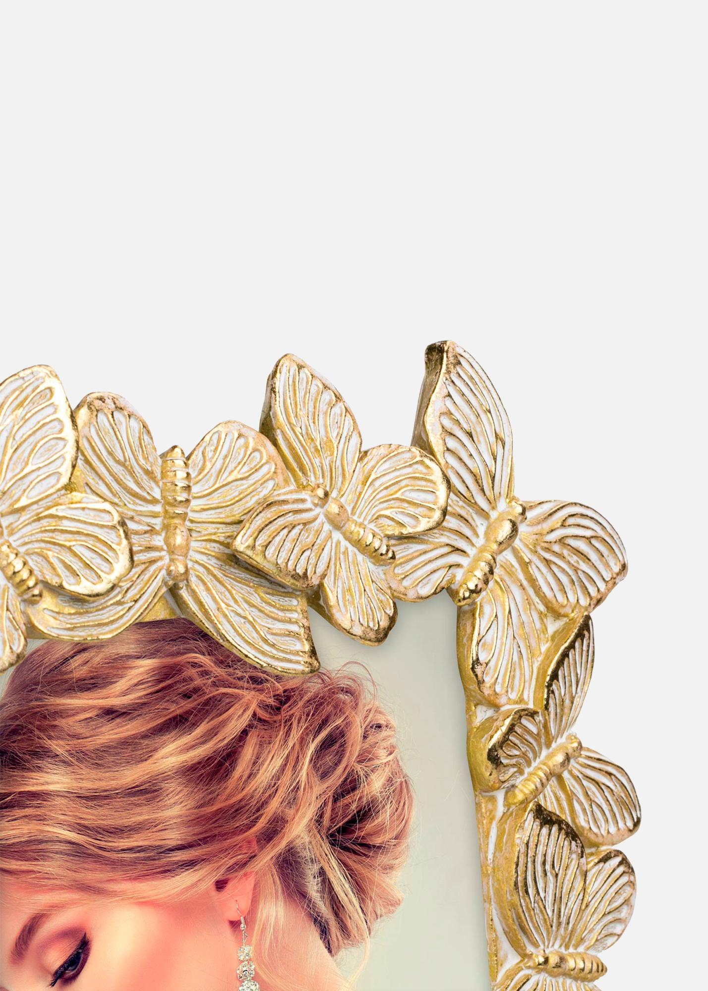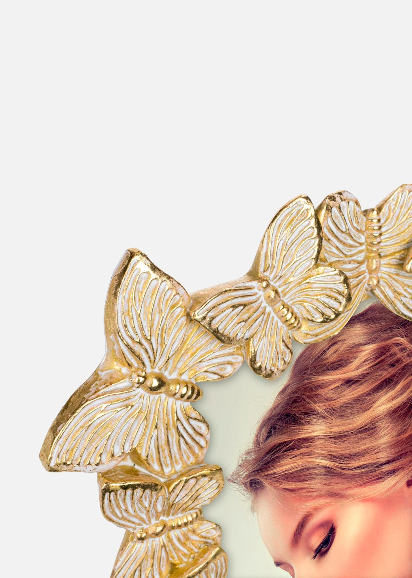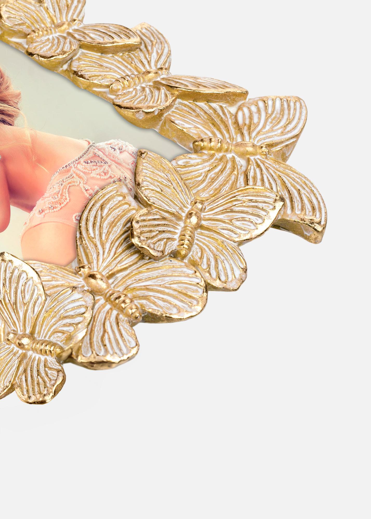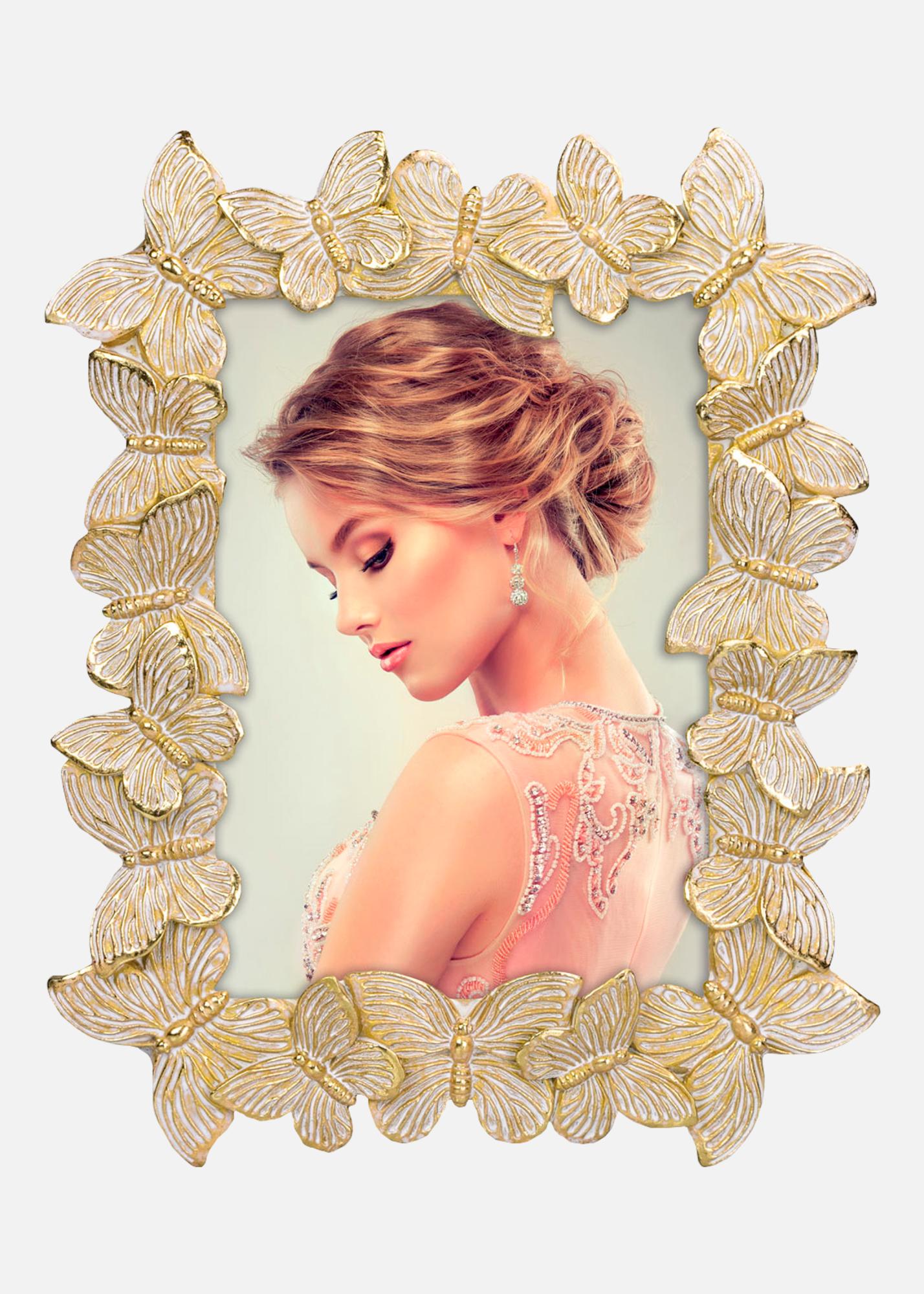Entdecken Sie die bezaubernde Schönheit unserer 13x18 cm Porträtrahmen, ein echter Blickfang für Ihr Zuhause. Dieser einzigartige Bilderrahmen ist verziert mit einer detailreichen Rahmenverzierung in Gold und Weiß mit Schmetterlingen, um Ihren Lieblingsbildern eine verspielte und elegante Note zu verleihen.
