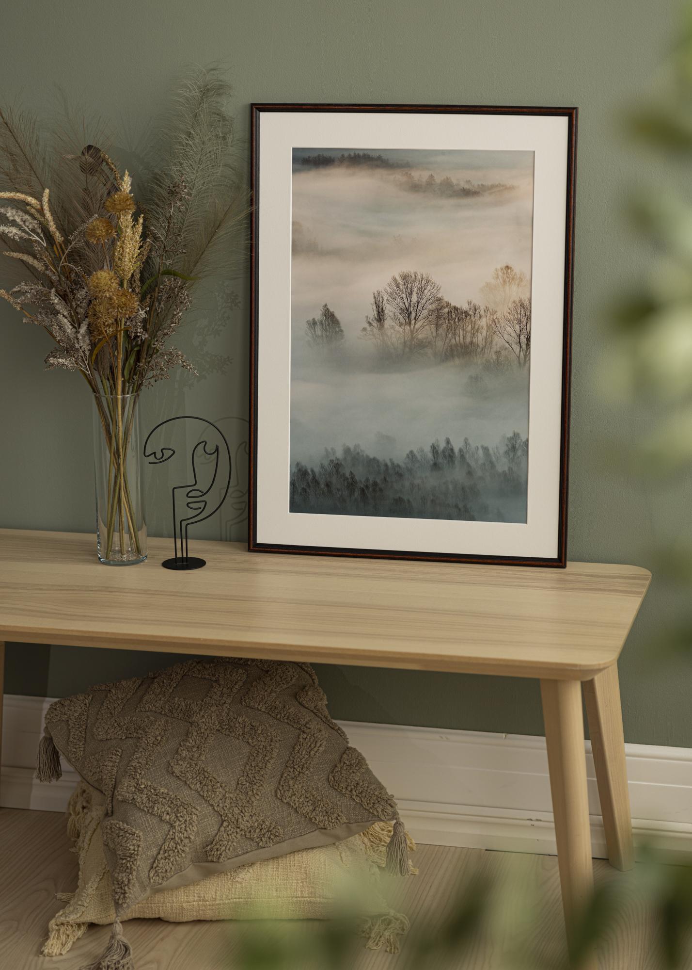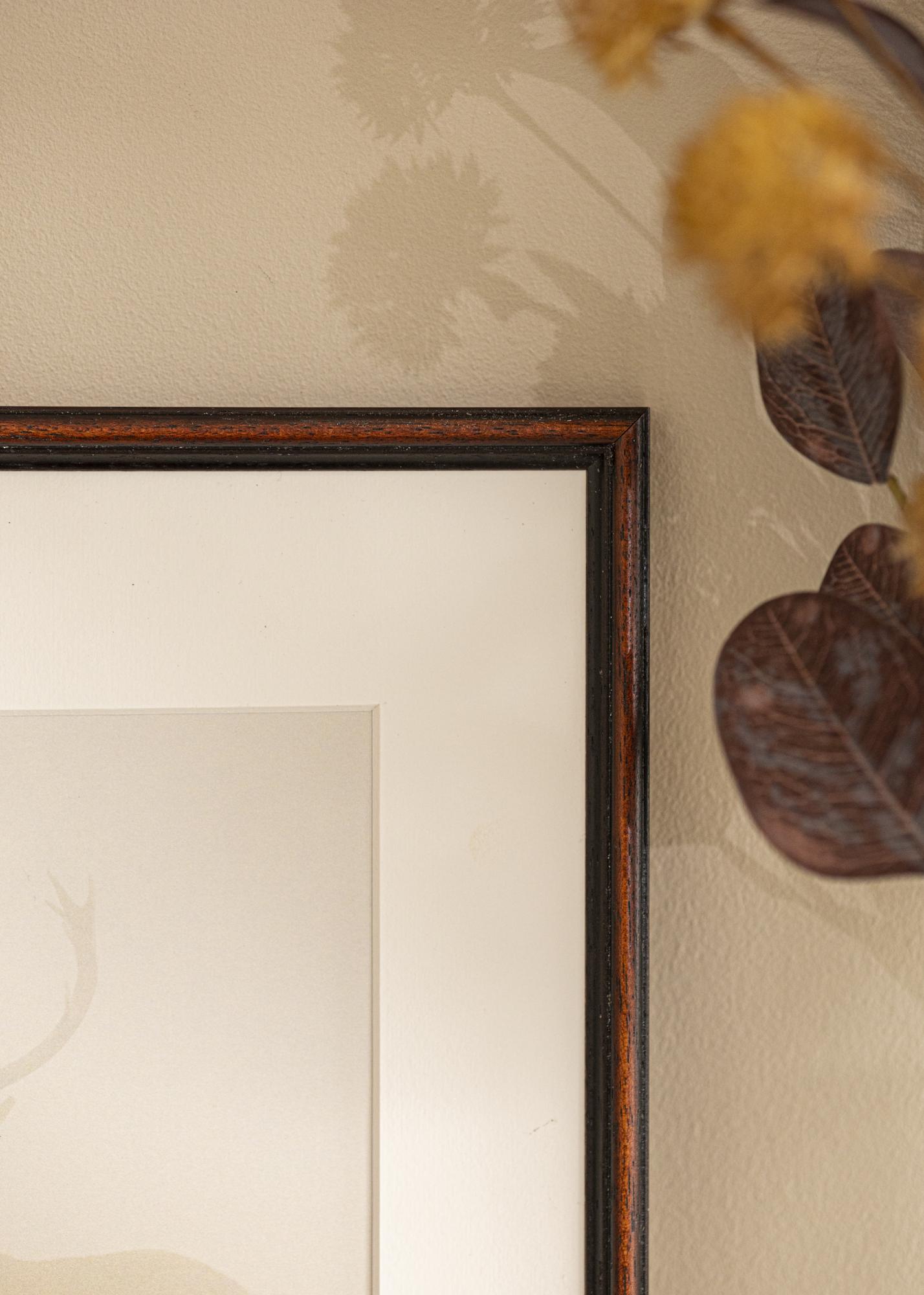 Hergestellt in Schweden aus Ayoholz, vereint dieser Rahmen Langlebigkeit mit Stil. Mit seiner matten Oberfläche, die das warme Walnussmuster ergänzt, verleiht er einen anspruchsvollen Eindruck. Die Rahmenbreite beträgt 15 mm und die Tiefe 14 mm, was dem gerahmten Bild eine diskrete, aber doch präsente Atmosphäre verleiht.