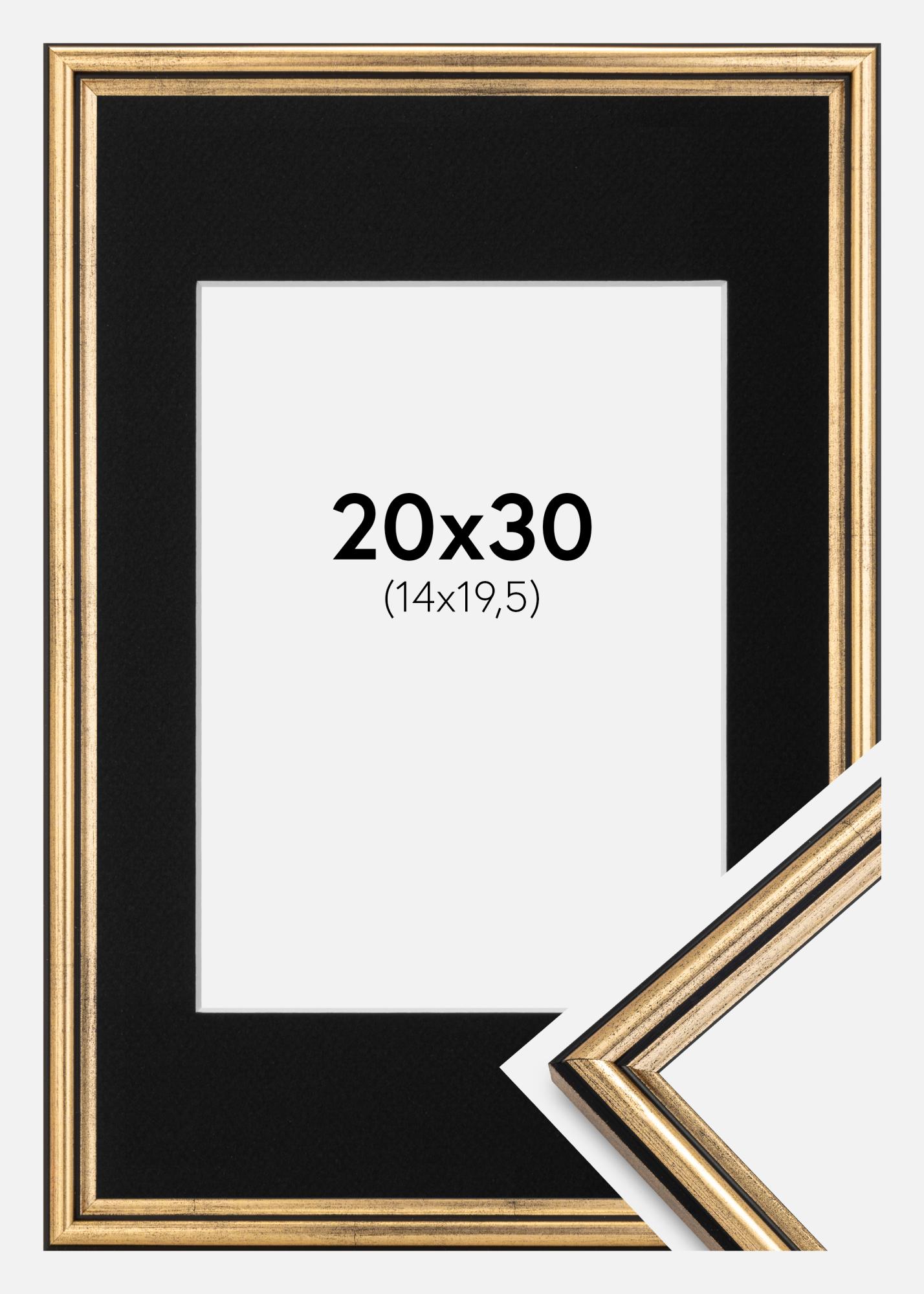 Rahmen Horndal Gold 20x30 cm - Passepartout Schwarz 15x21 cm (A5)