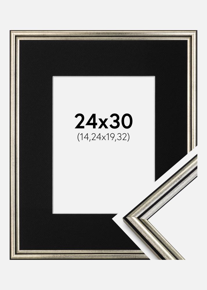 Rahmen Horndal Silber 24x30 cm - Passepartout Schwarz 6x8 inches