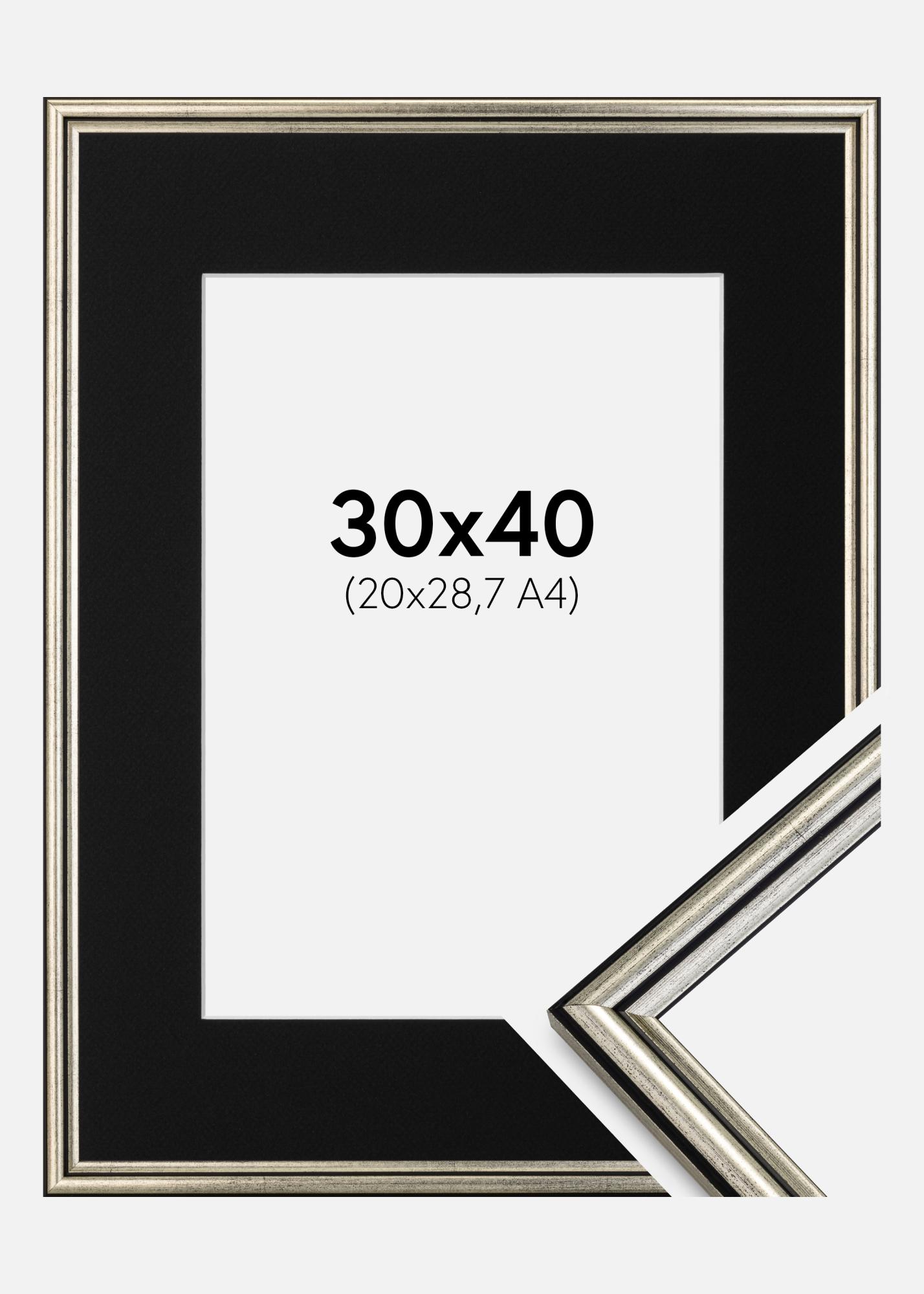 Rahmen Horndal Silber 30x40 cm - Passepartout Schwarz 21x29,7 cm