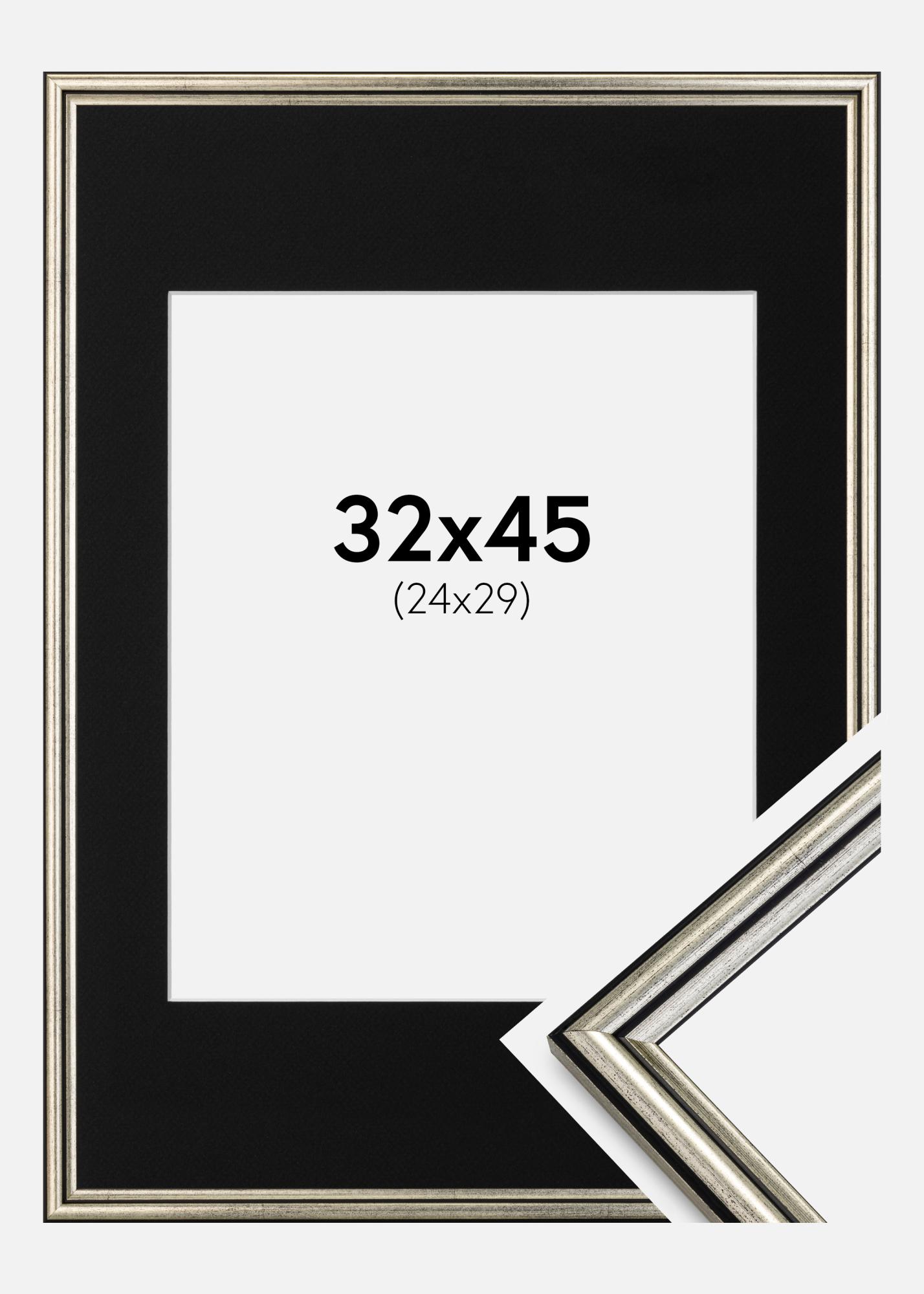 Rahmen Horndal Silber 32x45 cm - Passepartout Schwarz 25x30 cm