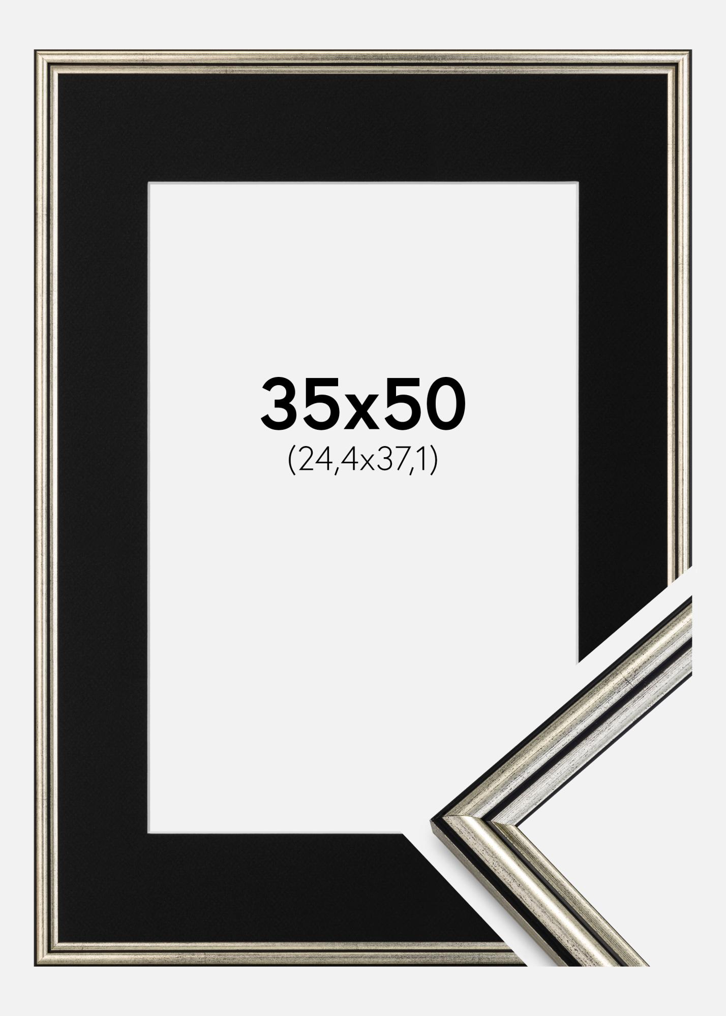 Rahmen Horndal Silber 35x50 cm - Passepartout Schwarz 10x15 inches