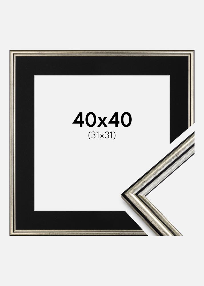 Rahmen Horndal Silber 40x40 cm - Passepartout Schwarz 32x32 cm