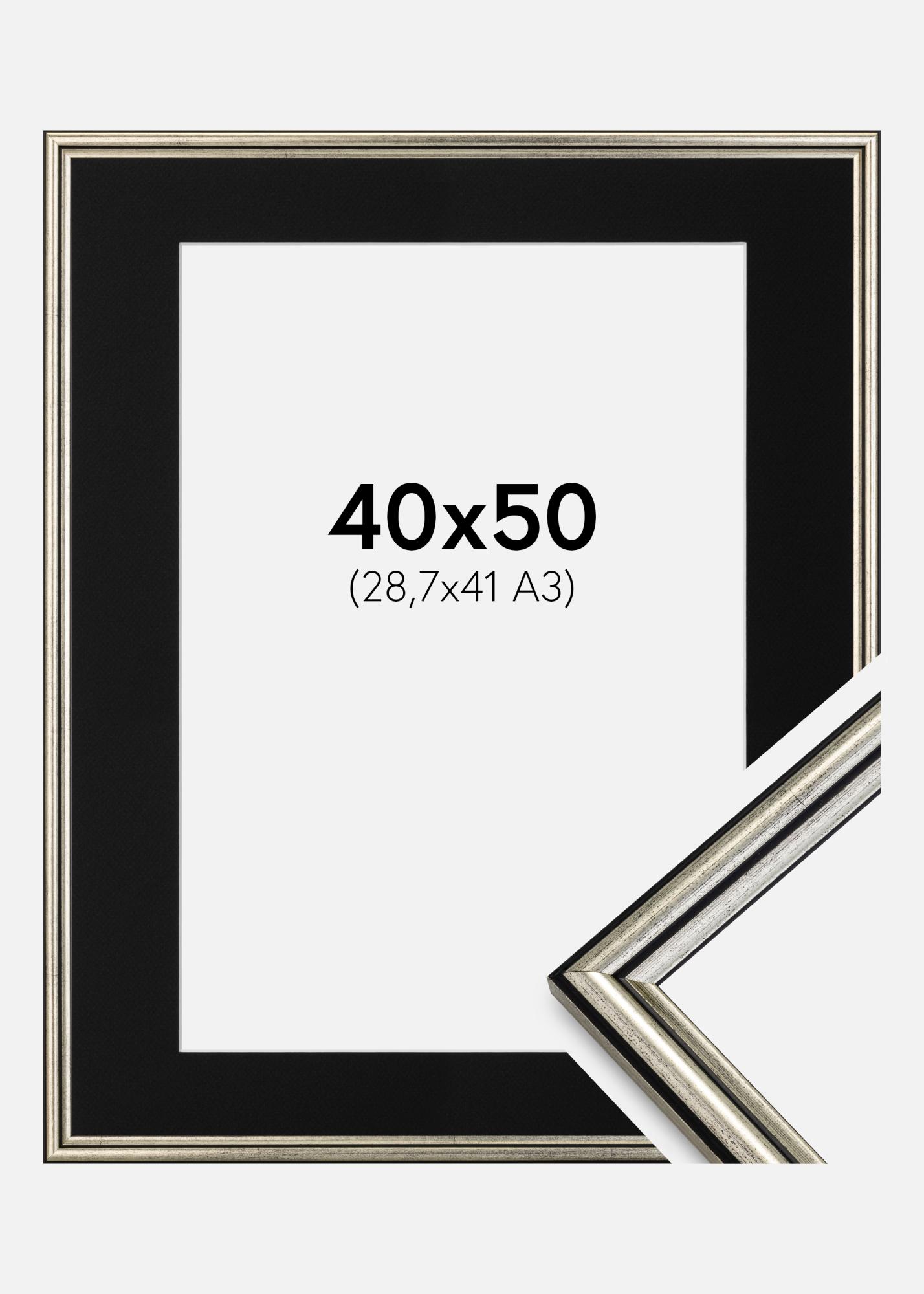 Rahmen Horndal Silber 40x50 cm - Passepartout Schwarz 29,7x42 cm