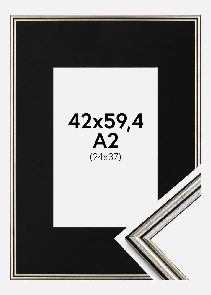 Rahmen Horndal Silber 42x59,4 cm (A2) - Passepartout Schwarz 25x38 cm