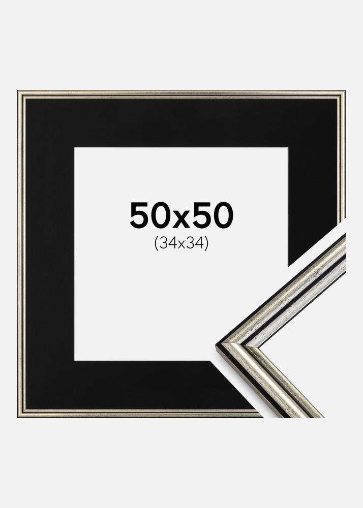 Rahmen Horndal Silber 50x50 cm - Passepartout Schwarz 35x35 cm