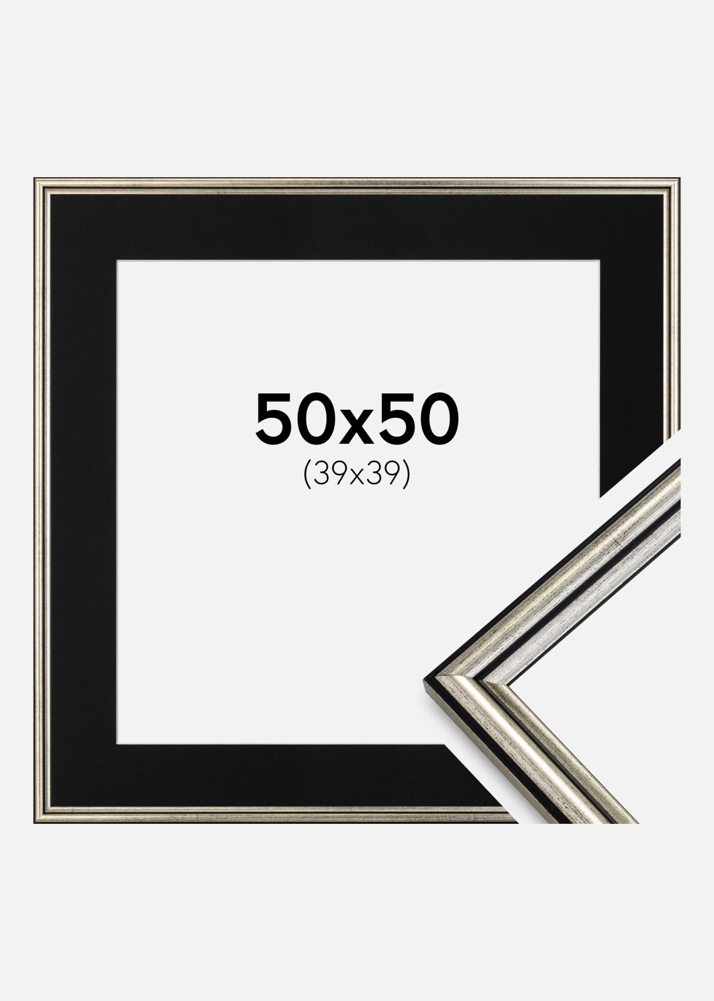 Rahmen Horndal Silber 50x50 cm - Passepartout Schwarz 40x40 cm