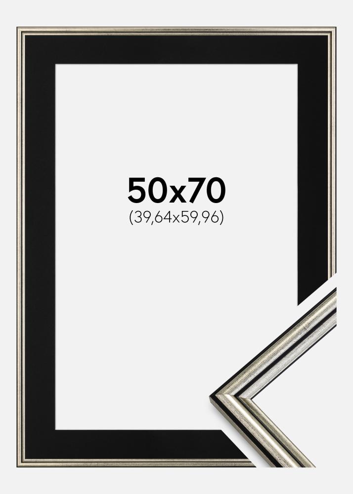 Rahmen Horndal Silber 50x70 cm - Passepartout Schwarz 16x24 inches