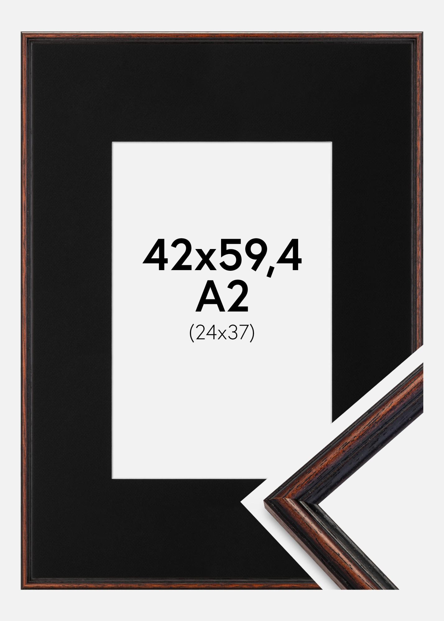Rahmen Horndal Walnuss 42x59,4 cm (A2) - Passepartout Schwarz 25x38 cm
