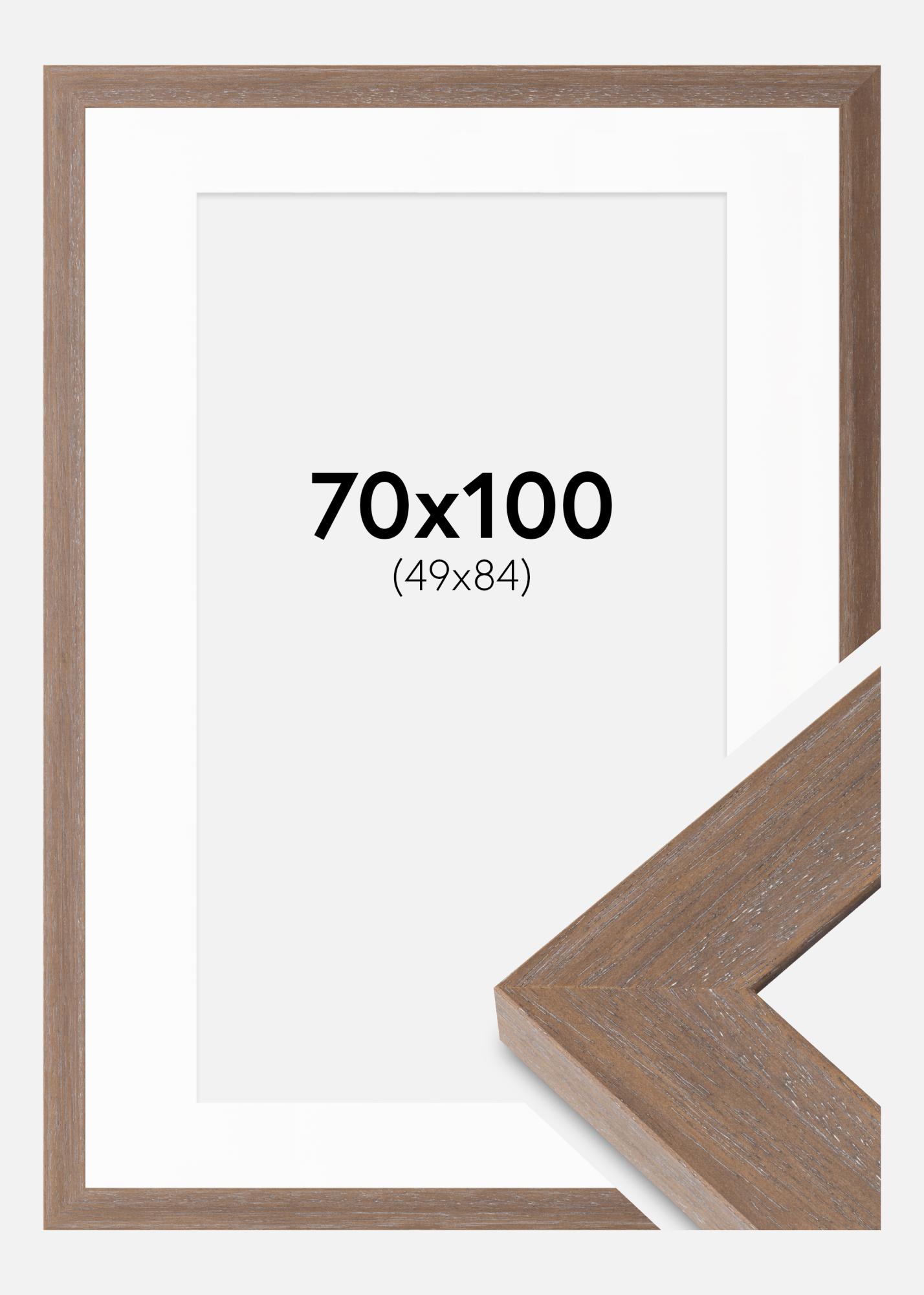 Rahmen Juno Grau 70x100 cm - Passepartout Weiß 50x85 cm