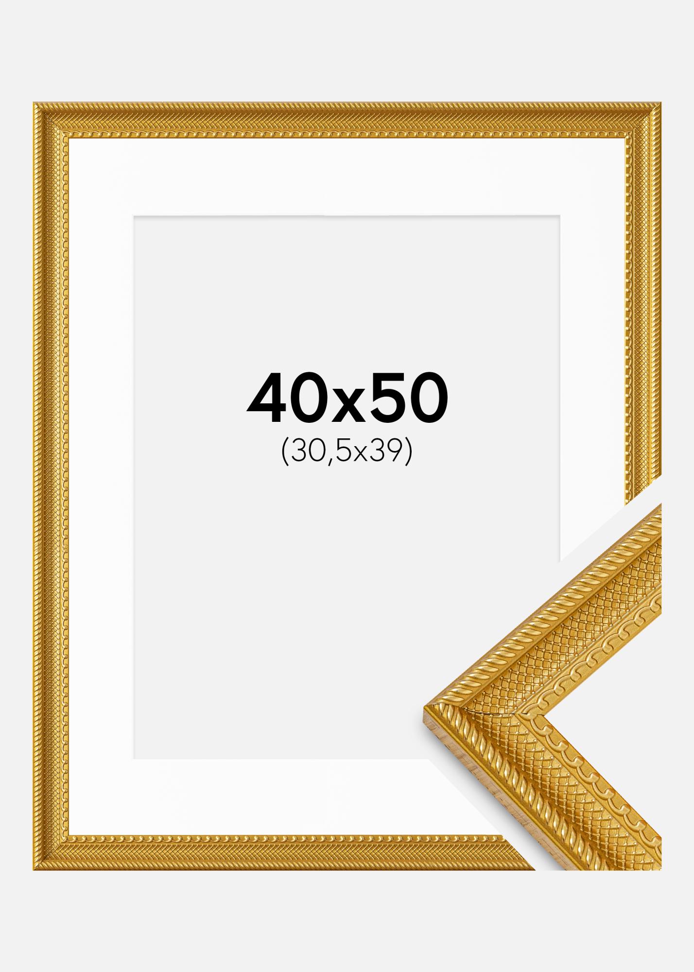 Rahmen Lattice Gold 40x50 cm - Passepartout Weiß 31,5x40 cm