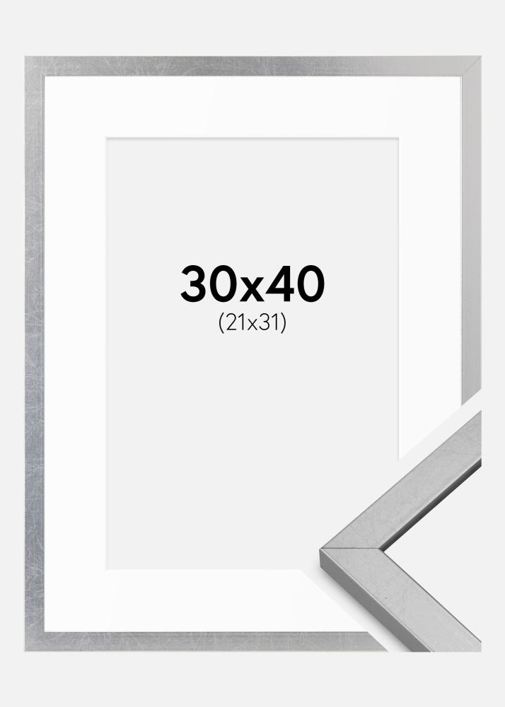 Rahmen Minerva Silber 30x40 cm - Passepartout Weiß 22x32 cm