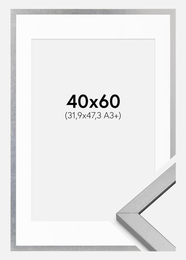 Rahmen Minerva Silber 40x60 cm - Passepartout Weiß 32,9x48,3 cm