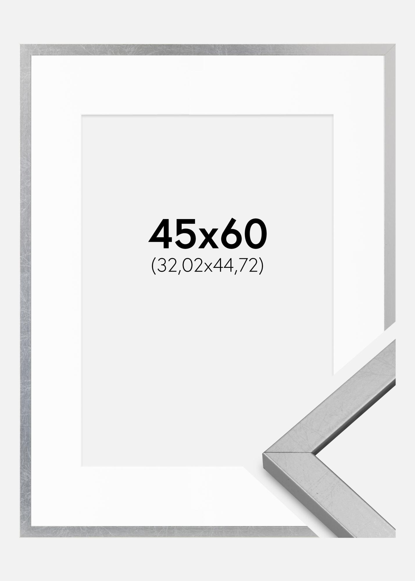 Rahmen Minerva Silber 45x60 cm - Passepartout Weiß 13x18 inches