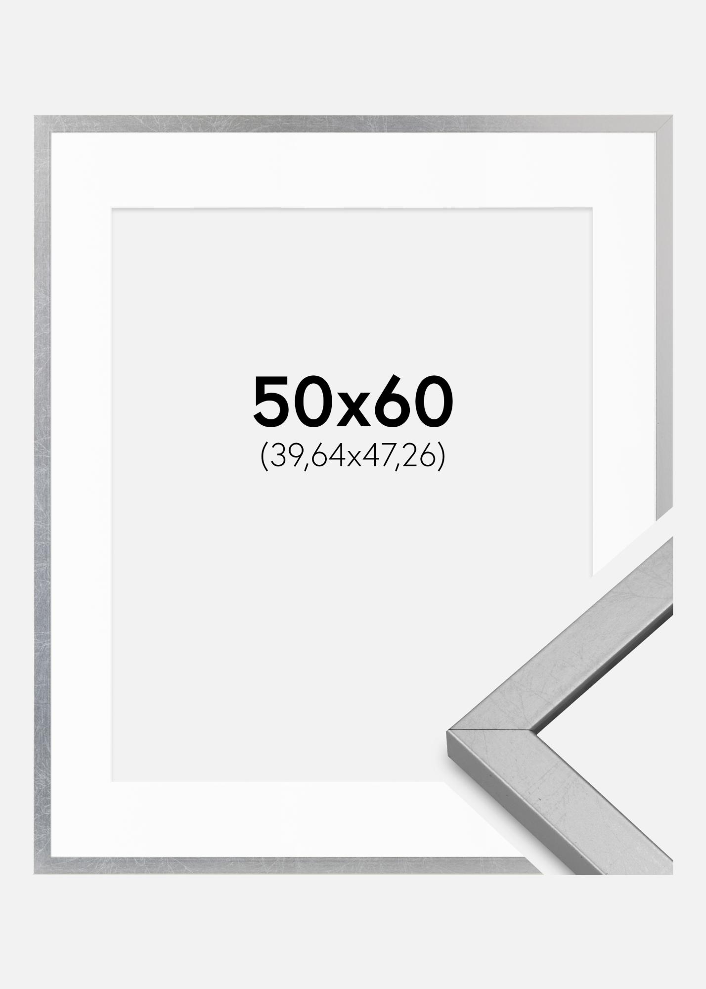 Rahmen Minerva Silber 50x60 cm - Passepartout Weiß 16x19 inches